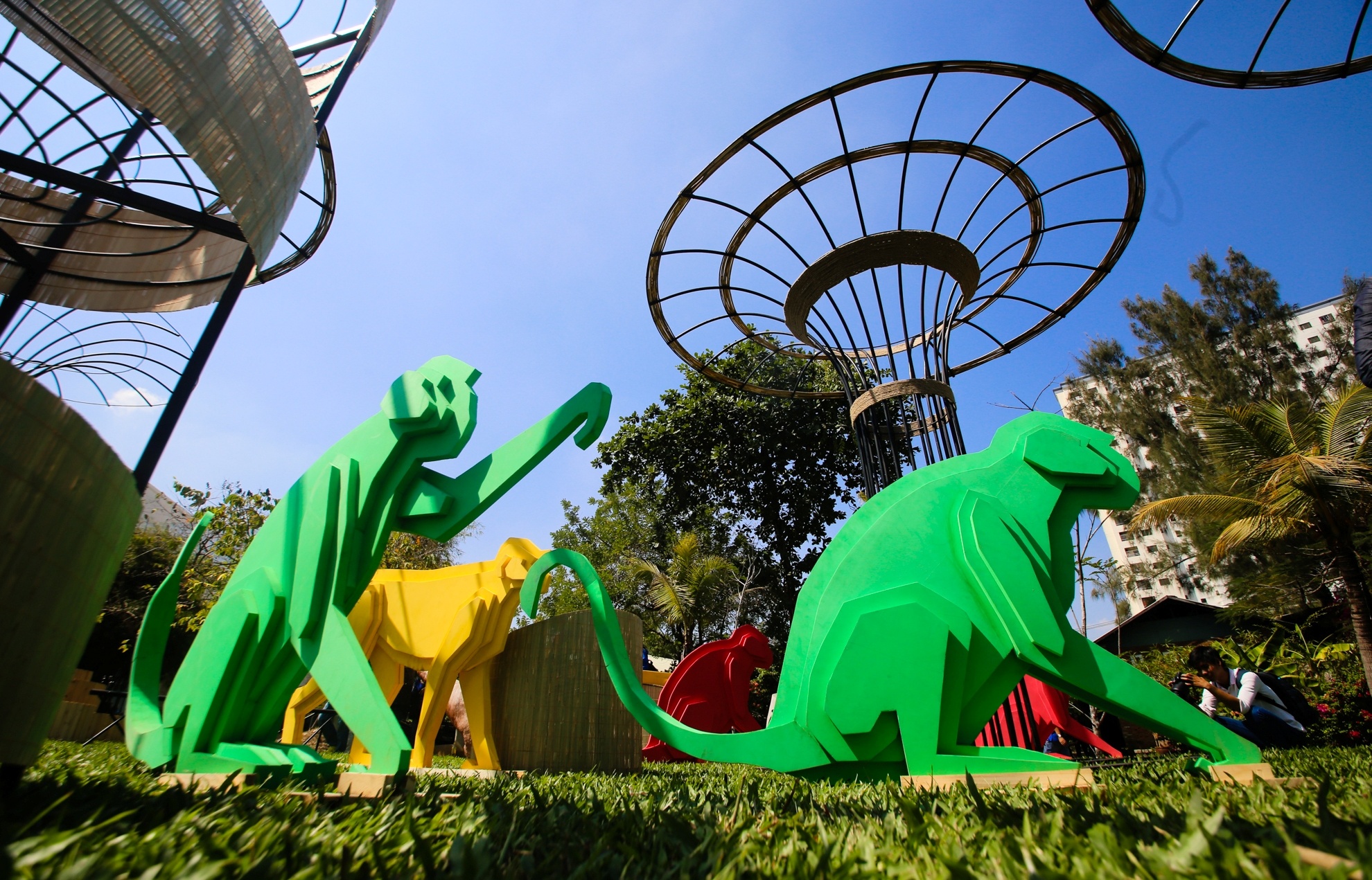 Hai gia đình khỉ khổng lồ tại đường hoa Tết Sài Gòn