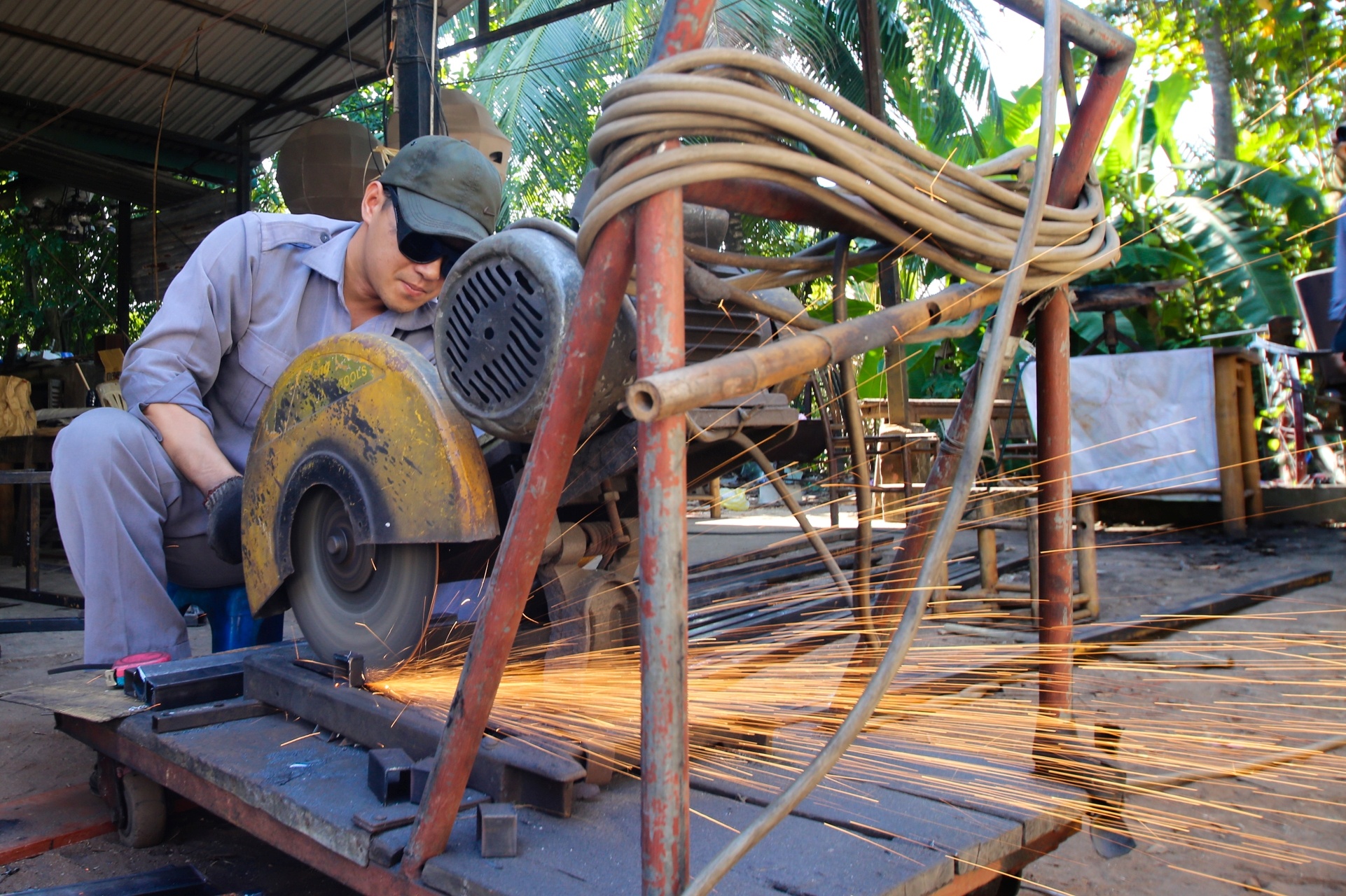 | Các công nhân thi công đường hoa đang gấp rút hoàn thành những công đoạn cuối cùng trước khi vận chuyển ra phố đi bộ để thi công. Dự kiến, đường hoa sẽ thi công vào 21/1, hoàn thành vào 5/2.