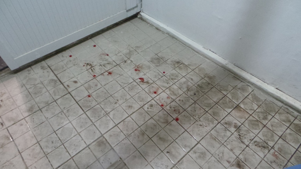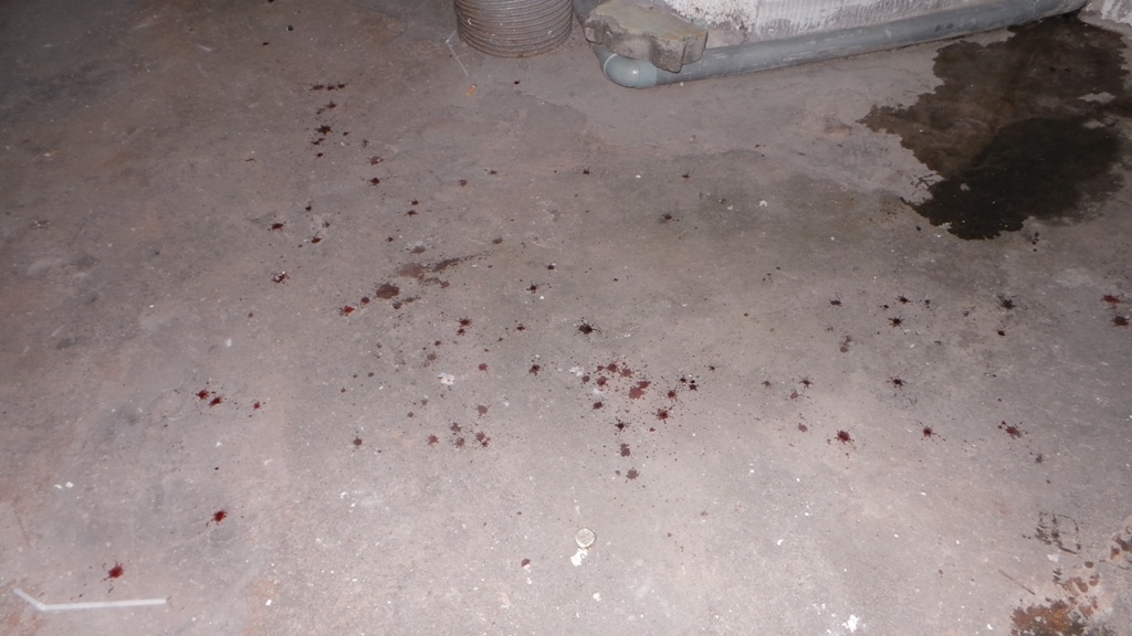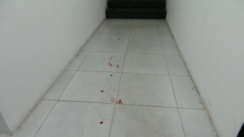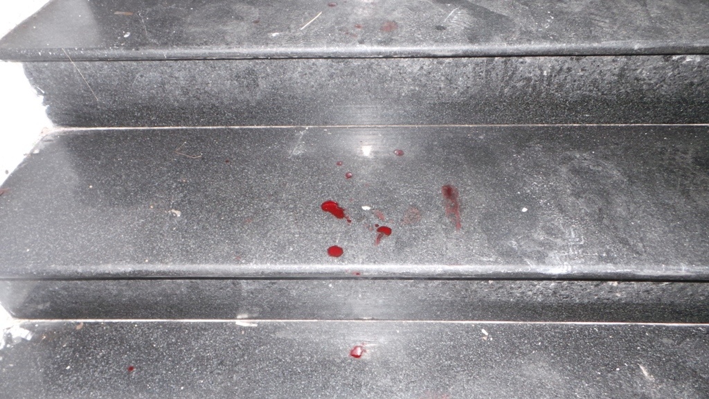 | Máu vương vãi trên cầu thang. |