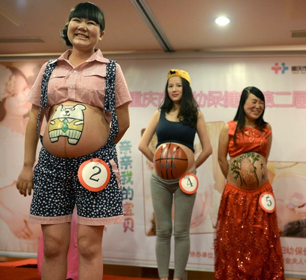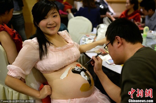 Ngày 27/10, bệnh viện Phụ nữ và trẻ em ở thành phố Trùng Khánh, Trung Quốc đã tổ chức cuộc thi vẽ tranh lên bụng bà bầu. Đối với các cặp vợ chồng, mang thai là một quá trình đáng nhớ. Vì vậy, cuộc thi này đã thu hút 30 cặp vợ chồng tham gia. Các ông chồng bằng trí tưởng tượng và khả năng sáng tạo đã vẽ lên bụng vợ những hình ảnh dễ thương như gấu trúc, bóng rổ, mặt nạ...