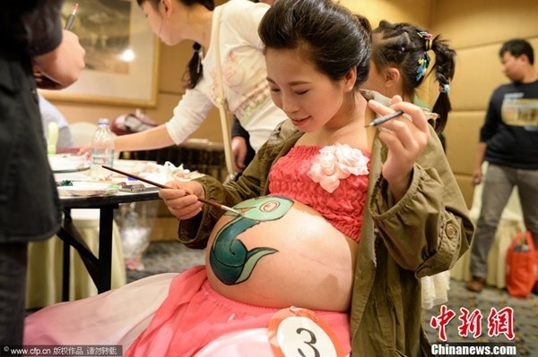 Cuộc thi vẽ tranh lên bụng bà bầu đã diễn ra sôi nổi tại thành phố Trùng Khánh, Trung Quốc.