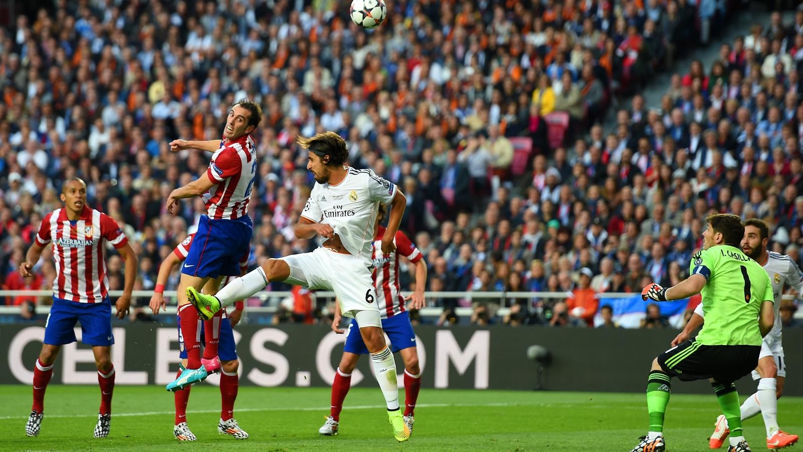 | Gặp lại đối thủ kỵ giơ Atletico ở chung kết Champions League 2013/14, Real suýt trở thành kẻ bại trận khi bị dẫn 0-1. Tuy nhiên, trung vệ Sergio Ramos kịp tỏa sáng với bàn thắng ở phút 90+3, buộc hai đội bước sang hiệp phụ. Sau đó Bale, Marcelo và Ronaldo thay nhau ghi bàn, giúp Real thắng chung cuộc 4-1 để lần thứ 10 lên đỉnh châu Âu. Ảnh: Italianfootballdaily. |
