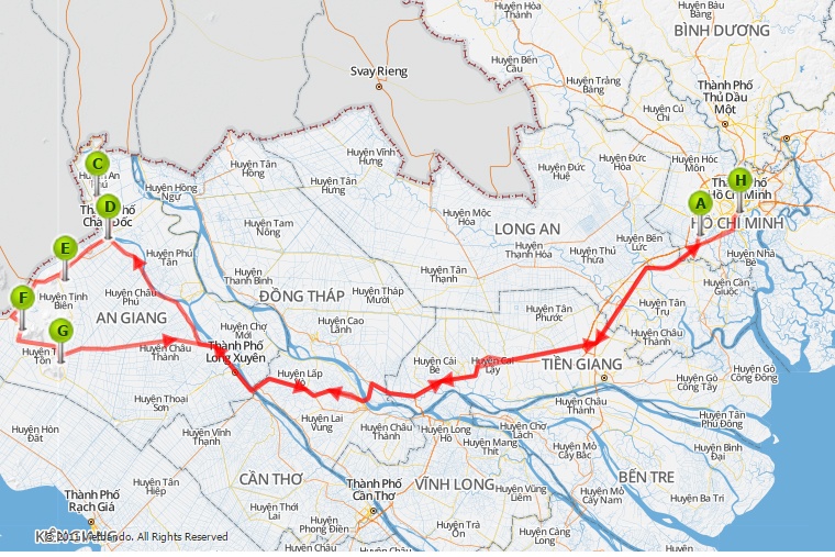 6h: Xuất phát từ TP.HCM đi Châu Đốc.