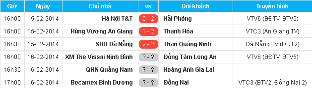 | Kết quả và lịch thi đấu vòng 5 V.League. Nguồn: VPF. |