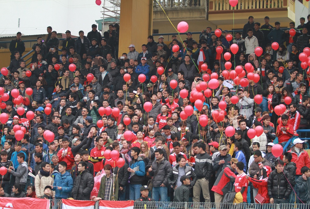 CĐV Hải Phòng không quản ngại đường xa tới Hàng Đẫy cổ vũ với hàng ngàn trái bóng đỏ, khiến không khí trên khán đài trở nên cuồng nhiệt. Dưới sân, trận đấu cũng trở nên nóng bỏng không kém với những pha ăn miếng trả miếng liên tục của hai đội.