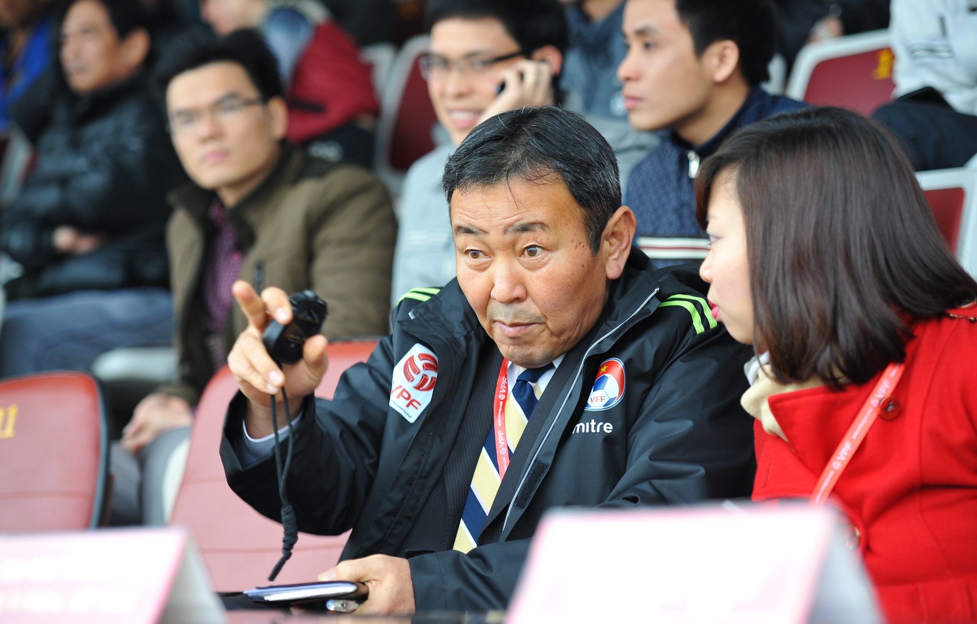 | Trưởng giải người Nhật Tanaka Koji có mặt tại sân Lạch Tray từ rất sớm để theo dõi, điều hành trận đấu. |