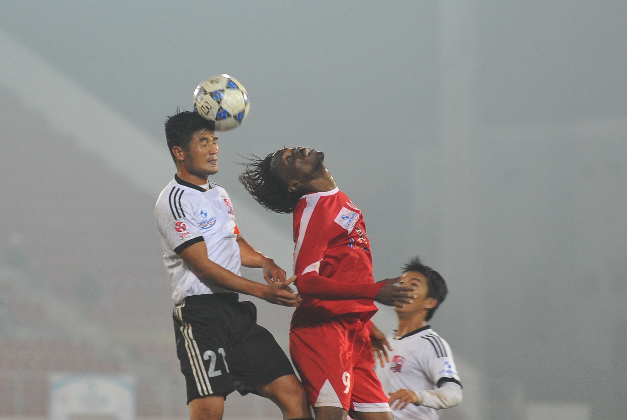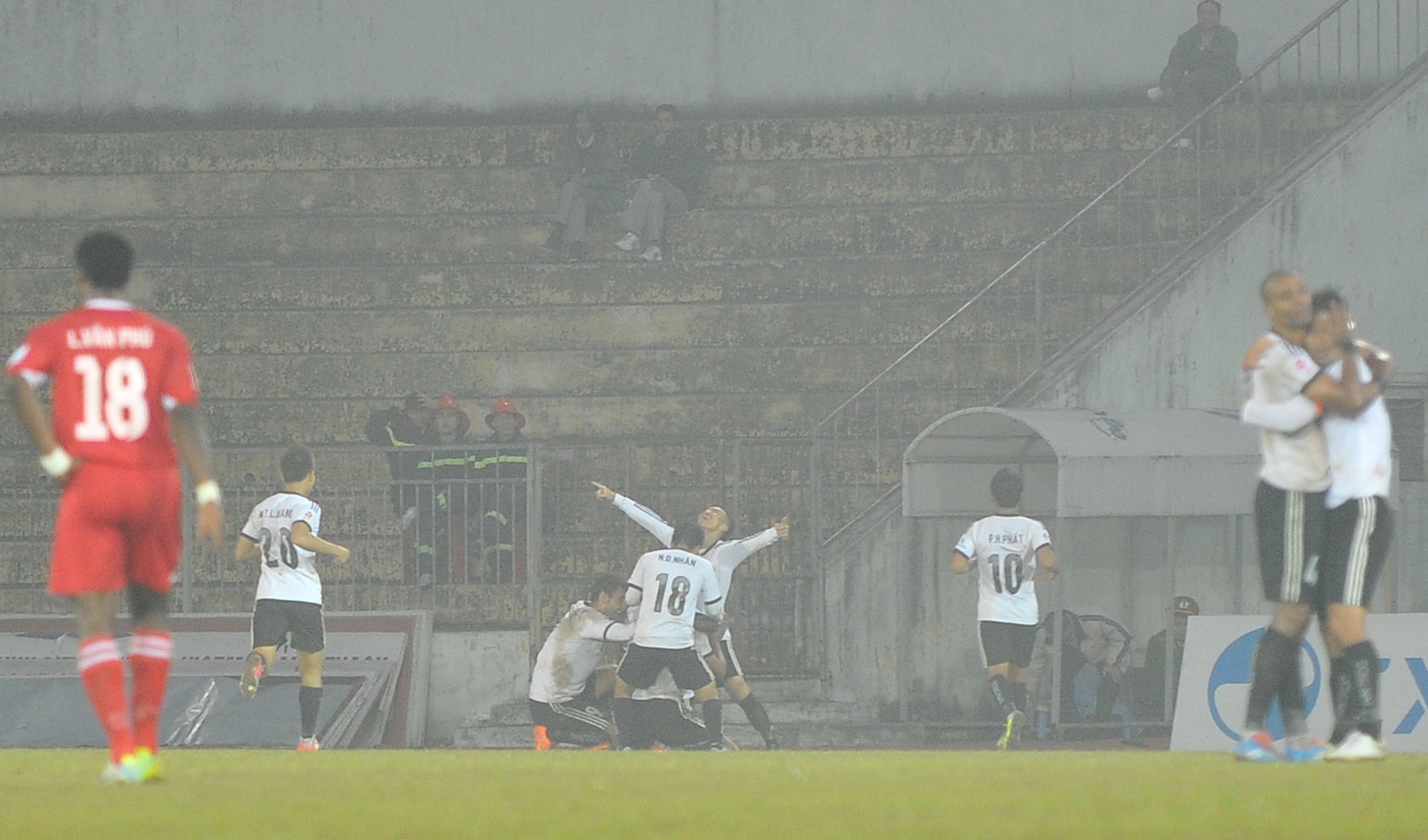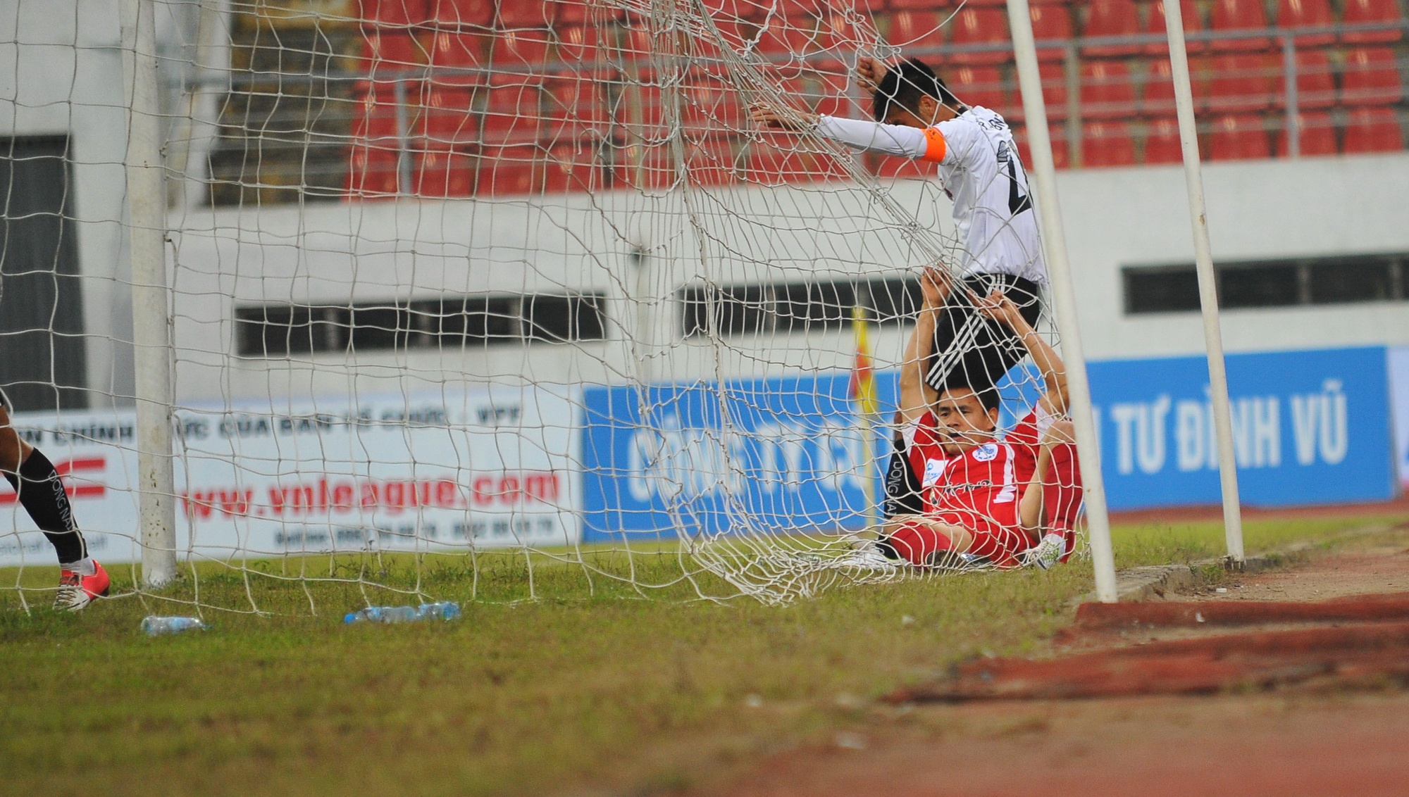 | Tiền đạo ngoại Fangan của Hải Phòng với chiều cao lý tưởng cũng không thể giành phần thắng trong một pha không chiến. Phút 67, Nguyễn Đức Nhân nâng tỷ số lên 2-0 cho Đồng Nai trong một tình huống hàng thủ Hải Phòng mắc lỗi nghiêm trọng. |