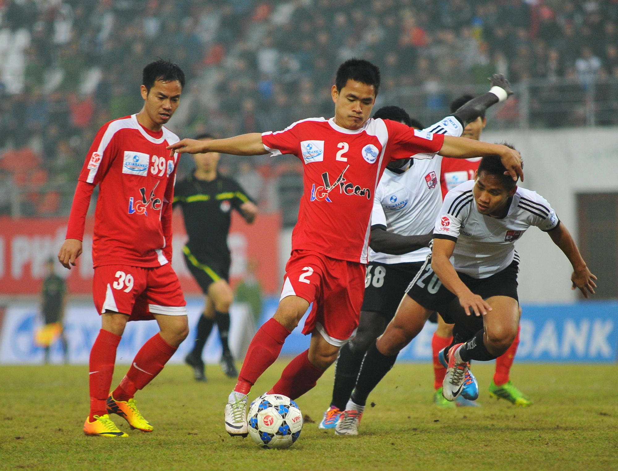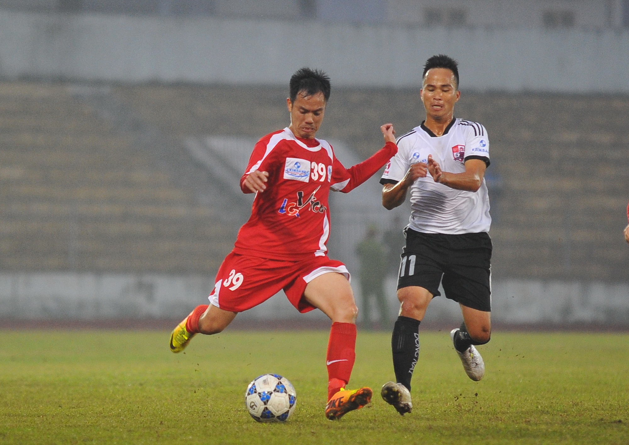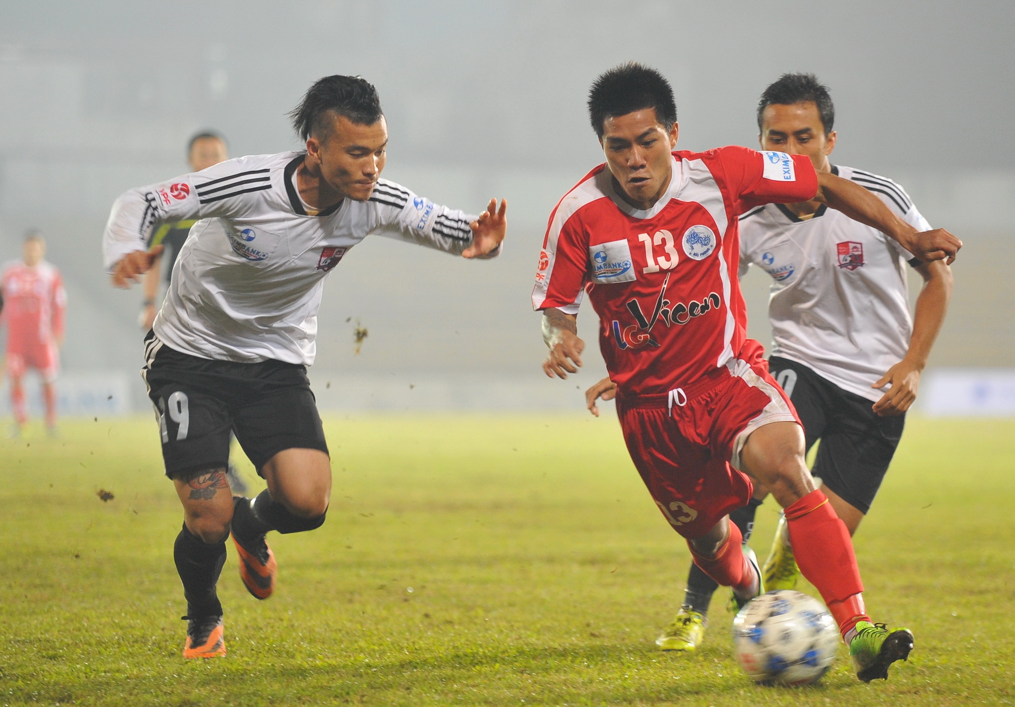 | Các miếng đánh của CLB Hải Phòng dần bế tắc trước hàng phòng ngự thi đấu rất kỷ luật của đội khách. |
