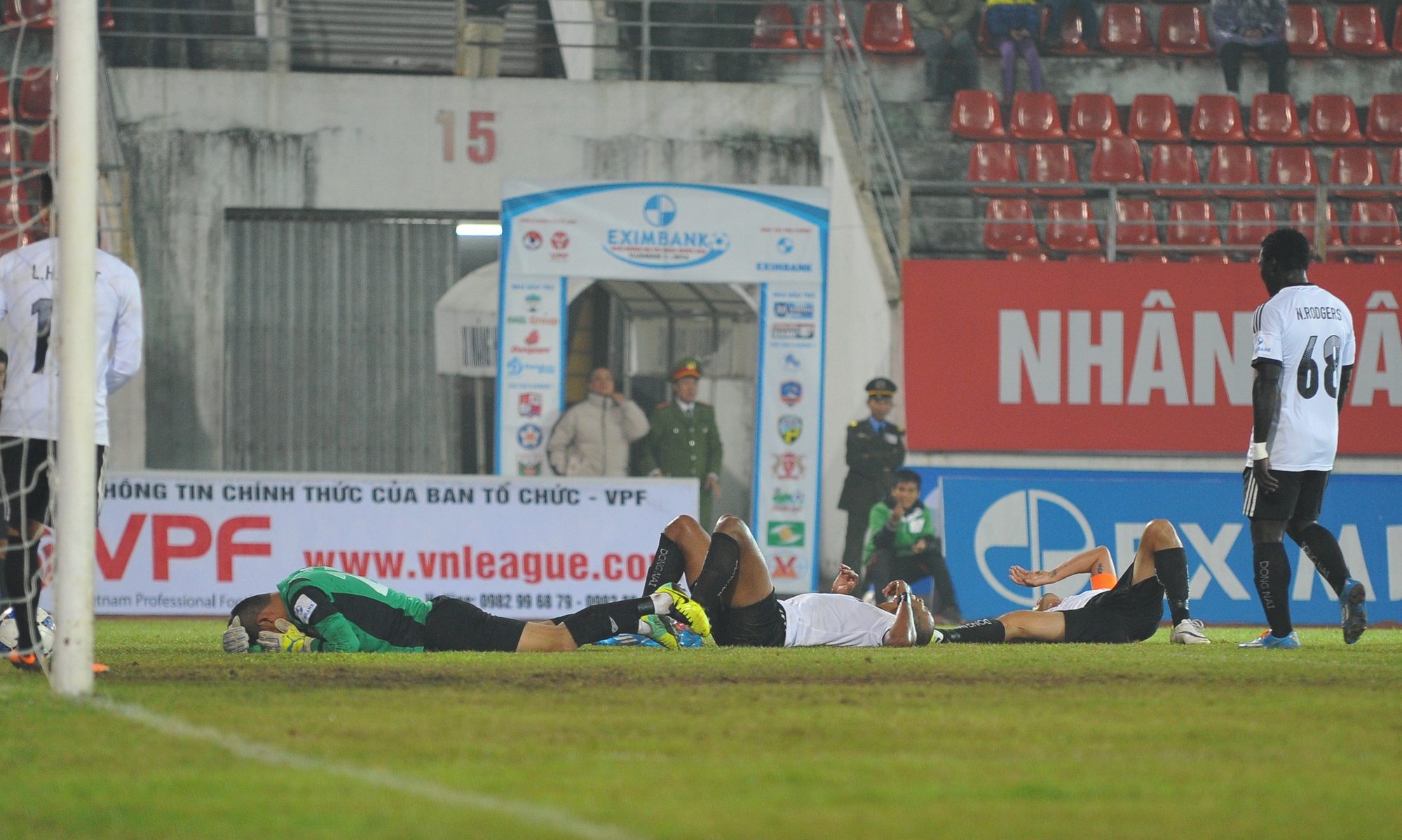 | Cách biệt 2 bàn khá an toàn cho một chiến thắng trên sân khách, các cầu thủ Đồng Nai liên tục nằm sân câu giờ. |