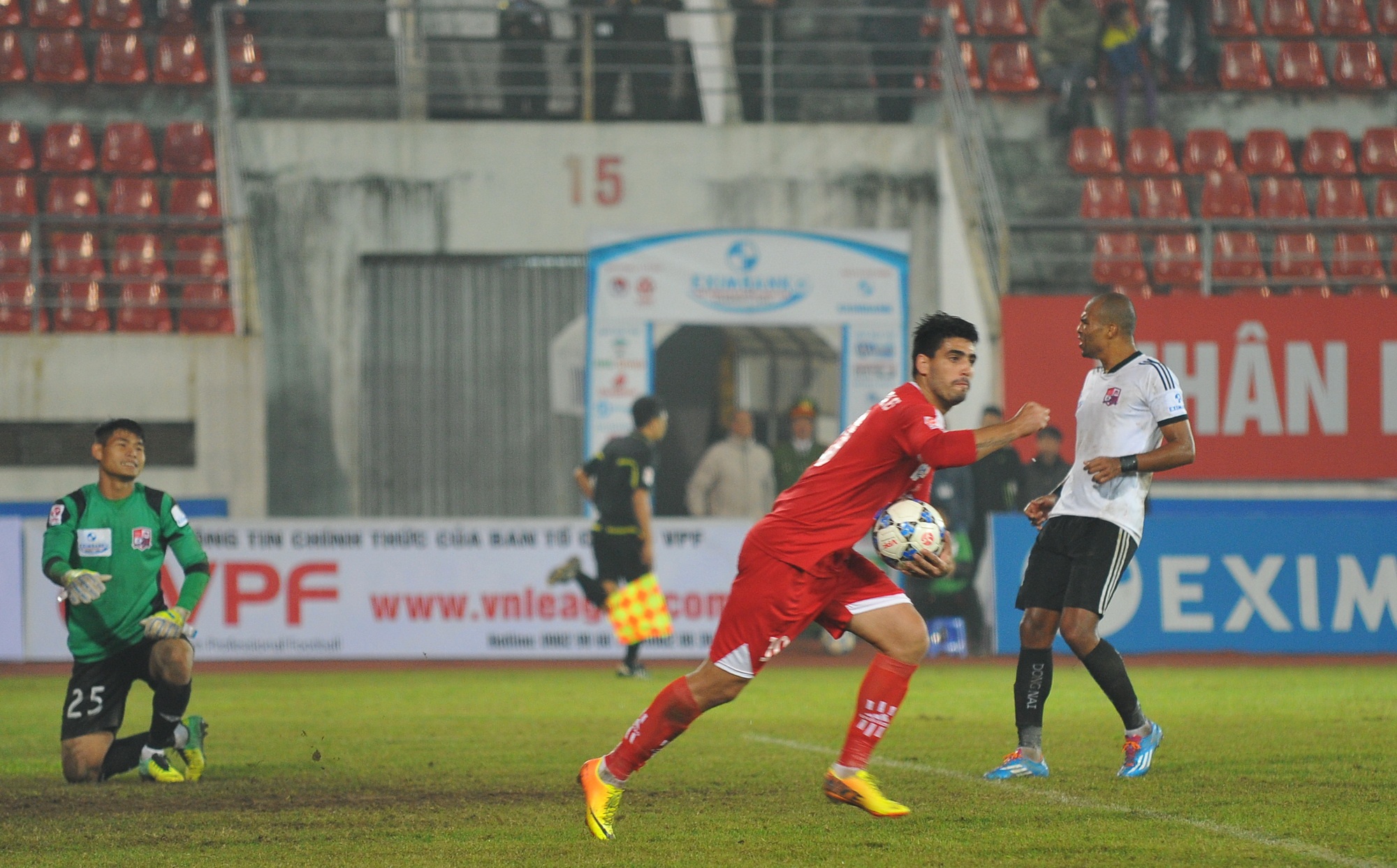 | Phút 75 của trận đấu, hàng hậu vệ Đồng Nai mắc sai sót khi phạm lỗi trong vòng cấm với tiền vệ Hoàng Ngọc Hùng. Goncalves dứt điểm thành công từ chấm 11m rút ngắn tỷ số xuống còn 1-2 cho đội bóng đất cảng. |