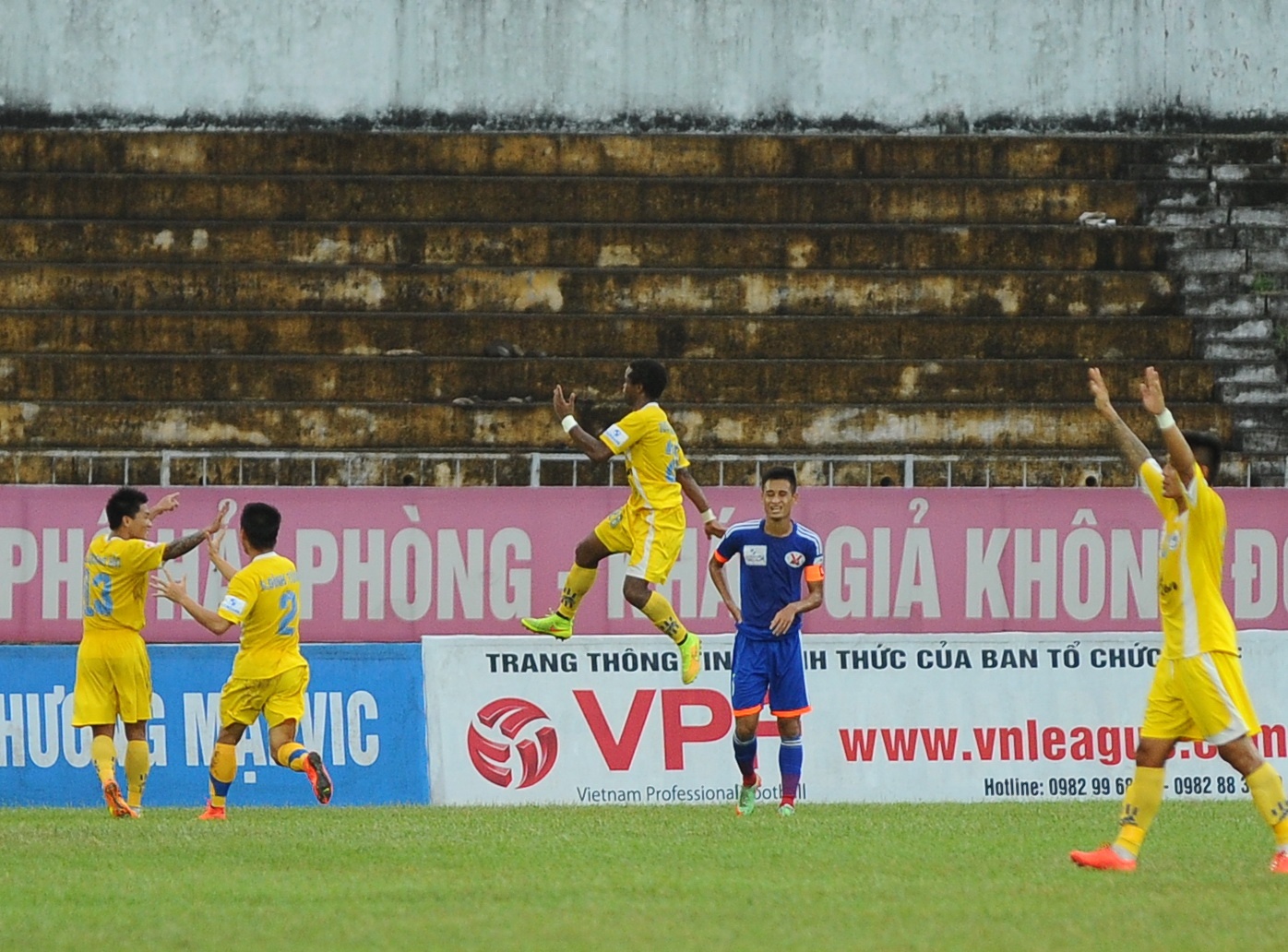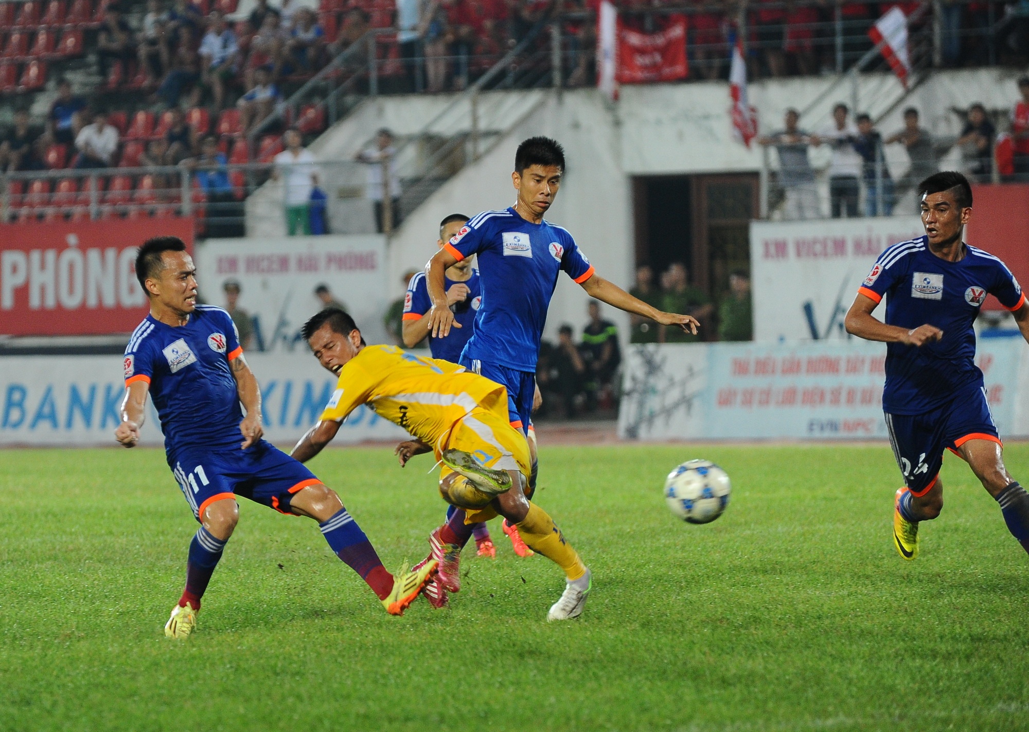 Thi đấu trên mặt sân trơn trượt sau cơn mưa lớn, trận đấu vẫn diễn ra rất kịch tính. Với bàn thắng ở những phút cuối trận, Hải Phòng đã giành chiến thắng sát nút 2-1 trước QN.