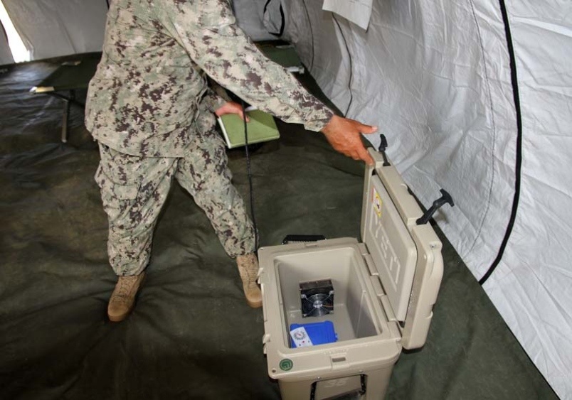 Một thiết bị y tế tiên tiến của Hải quân Mỹ. Chiếp hộp này có khả năng làm lạnh dựa vào năng lượng mặt trời. Nó giúp con người bảo quản thuốc và các dụng cụ y tế trong môi trường lạnh. |