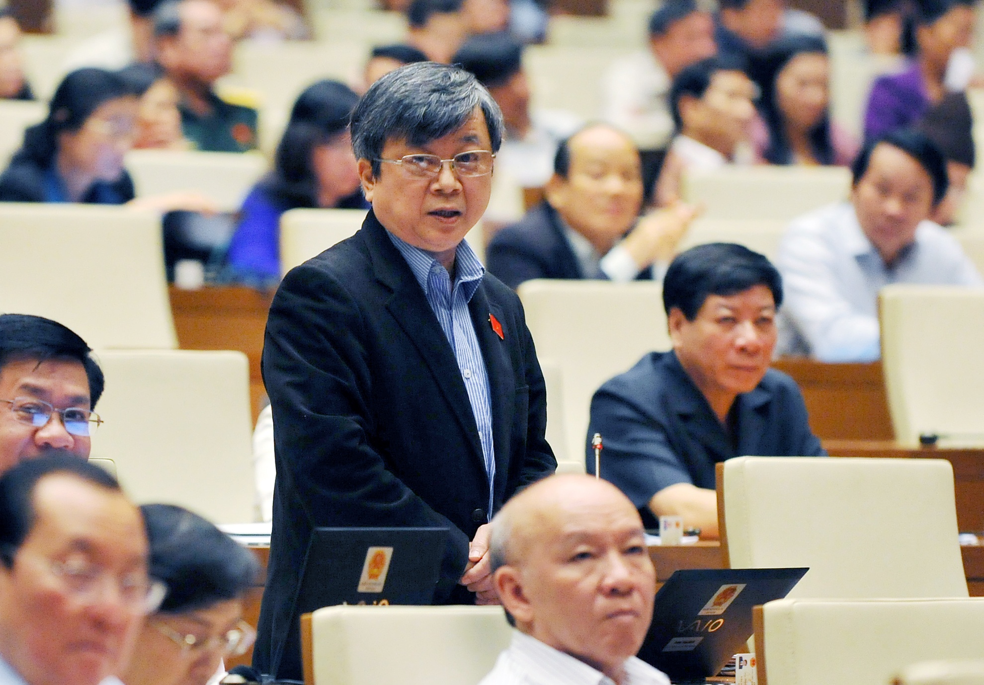| Đại biểu Trương Trọng Nghĩa chất vấn Bộ trưởng Công Thương về Nhà máy Gang thép Thái Nguyên 8.100 tỷ đồng bỏ không. Ảnh: Hoàng Hà. |