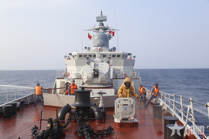 Các tàu hải quân của hai Biên đội đã hiệp đồng chặt chẽ, xử trí các tình huống sát với khoa mục huấn luyện, bảo đảm an toàn tuyệt đối về người và vũ khí, trang bị.