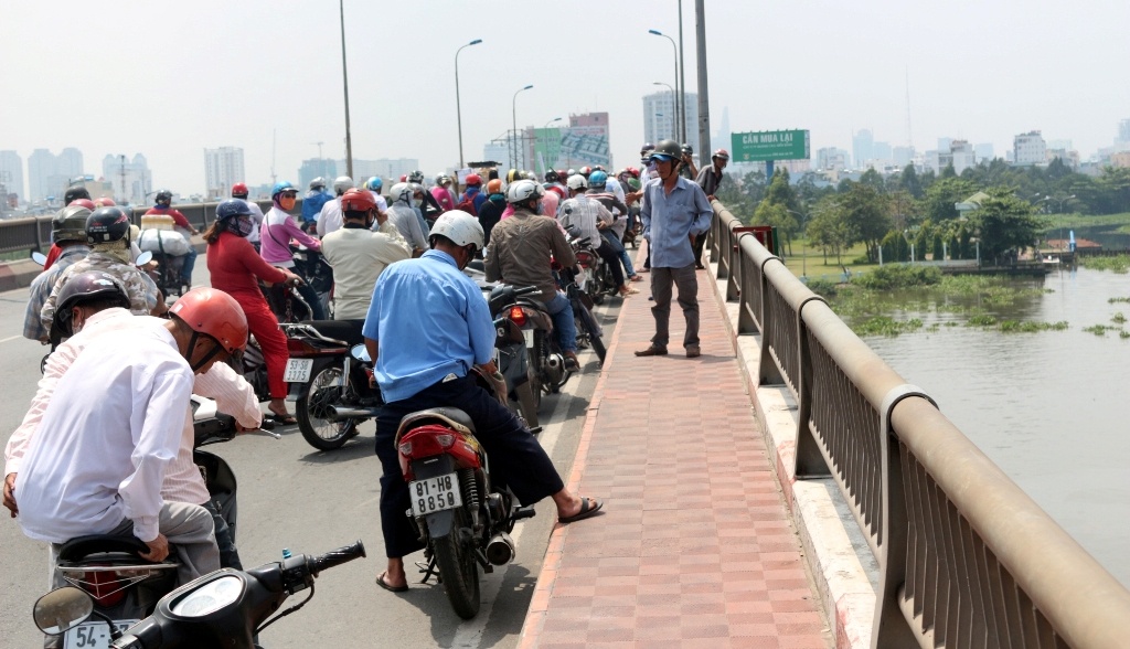 | Vụ việc xảy ra vào trưa 15/10 tại cầu Bình Triệu 1 và Bình Triệu 2 nối quận Bình Thạnh với quận Thủ Đức, TP.HCM. |