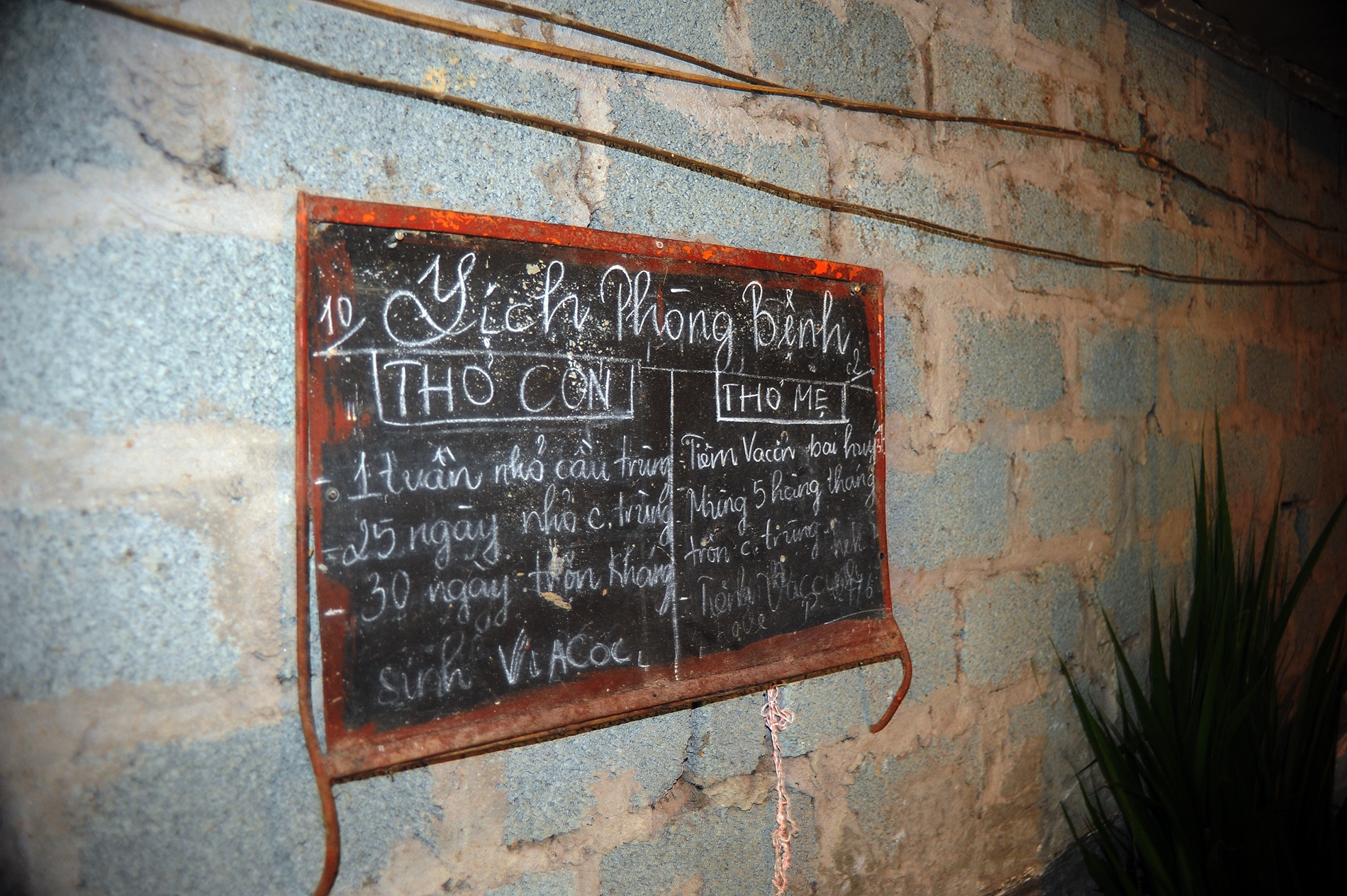 Để dễ quản lý, trên mỗi ô ông đều đánh dấu theo dõi thời gian sinh trưởng, phát triển của thỏ, có quy định thời gian cho ăn và vệ sinh chuồng trại.