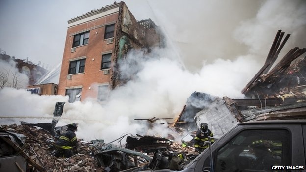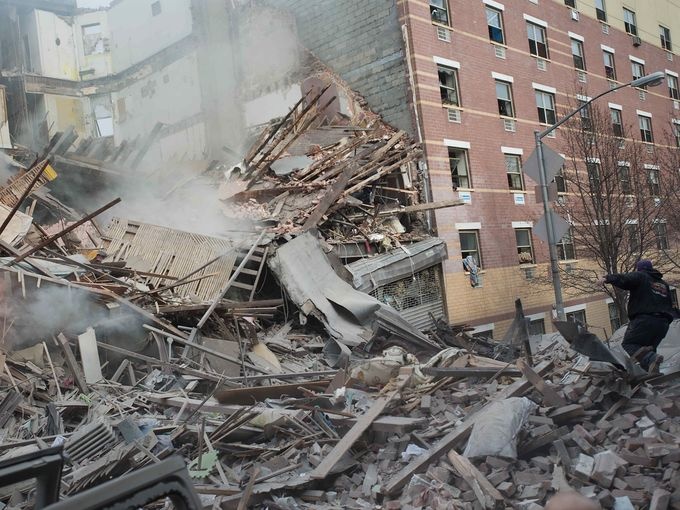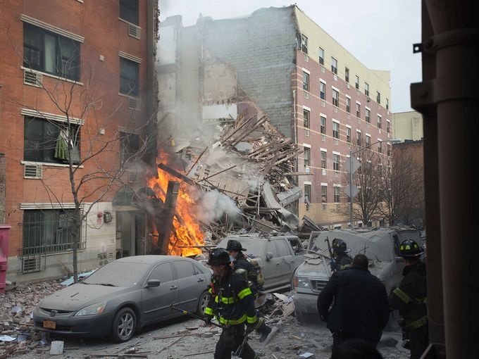 | Các nhân chứng kể rằng, tiếng nổ lớn vang lên từ hai tòa nhà 5 tầng nằm sát nhau trên đại lộ Park và đường 116, thành phố New York vào lúc 9h30 hôm 12/3 theo giờ Mỹ. Ảnh: Getty Images |