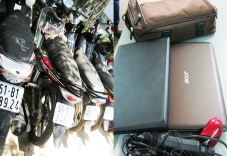 | Phương tiện gây án và tang vật thu giữ của băng nhóm cướp giật lộng hành ở ven Sài Gòn. |