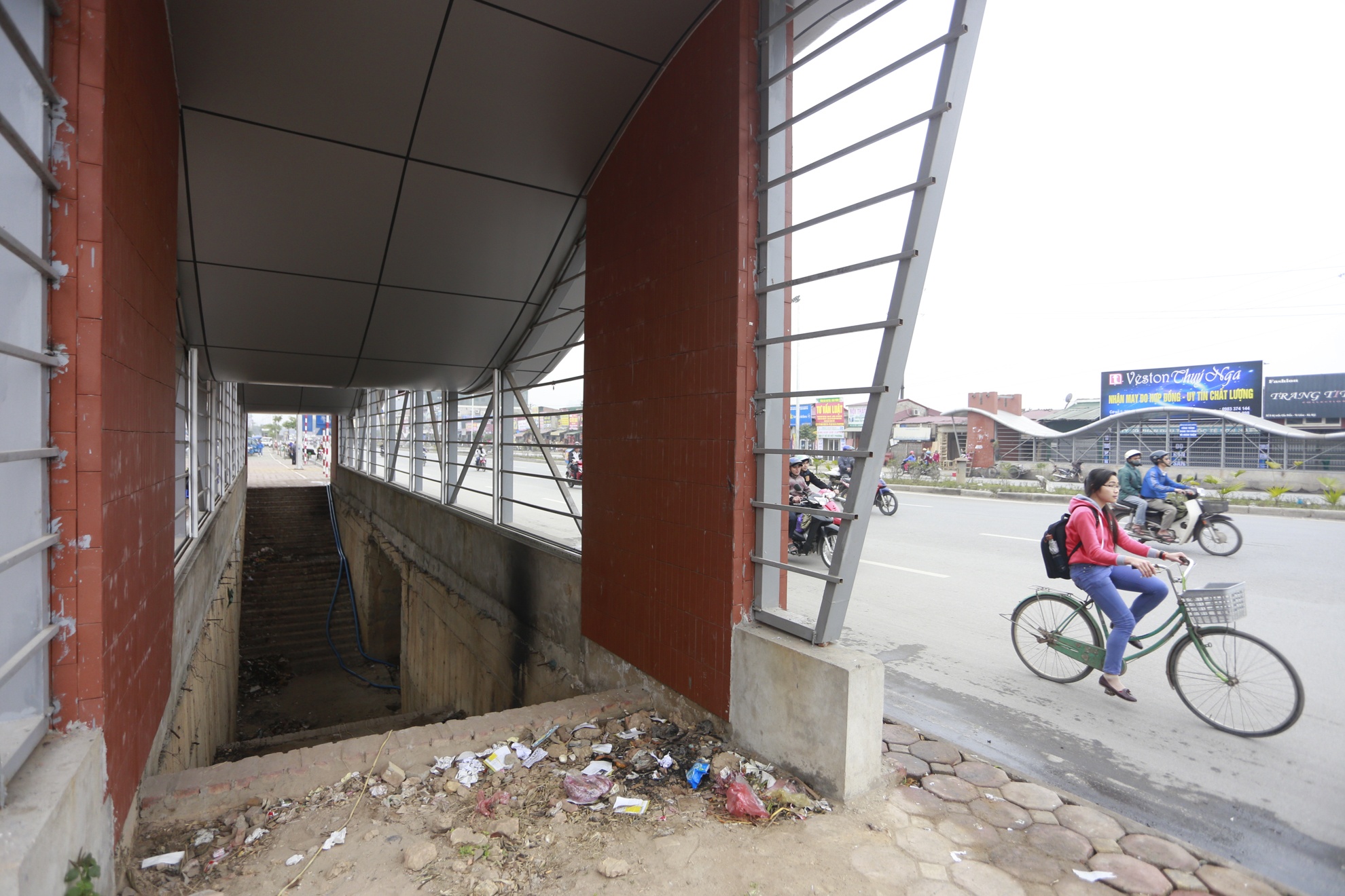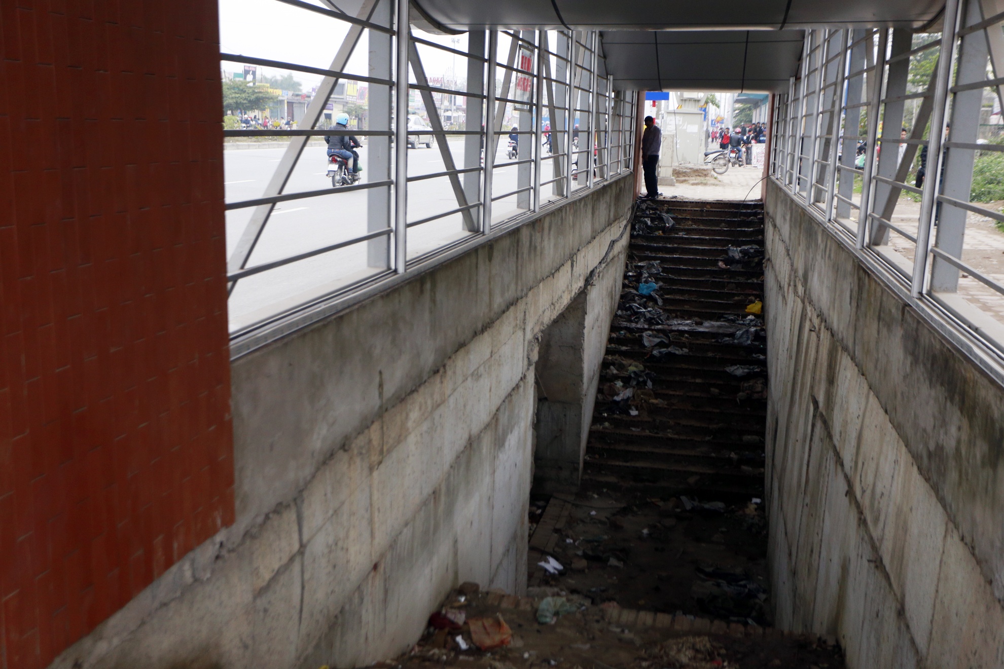 | 4 hầm bộ hành nằm dọc quốc lộ 32 được xây dựng năm 2012, với số vốn đầu tư lên đến nhiều tỷ đồng đang bị bỏ hoang. Trong ảnh là hầm bộ hành số 1 gần show room ôtô đầu cầu Diễn. |