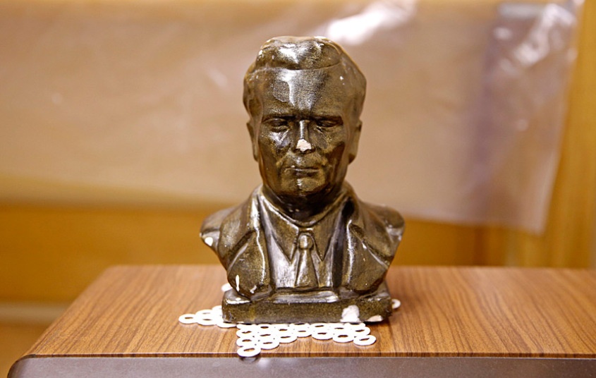 | Bức tượng bán thân nhỏ của vị cố Tổng thống đặt ở một nơi trang trọng trong hầm. |