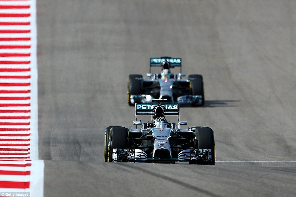 | Cuộc chiến ở 2 vị trí dẫn đầu vẫn là cuộc ganh đua giữa hai tay đua của đội Mercedes, Nico Rosberg và Lewis Hamilton. |