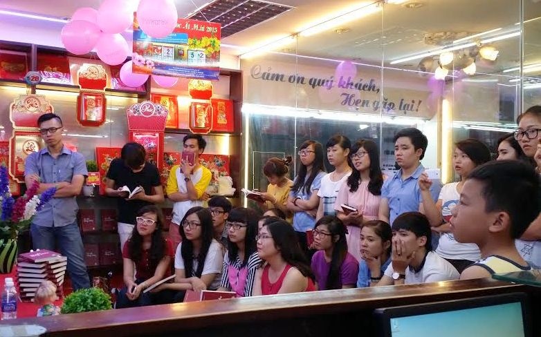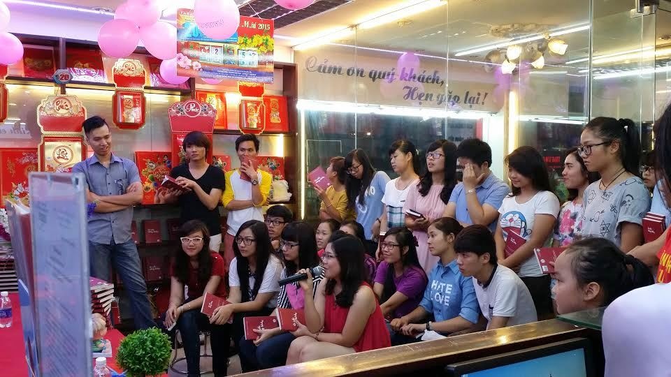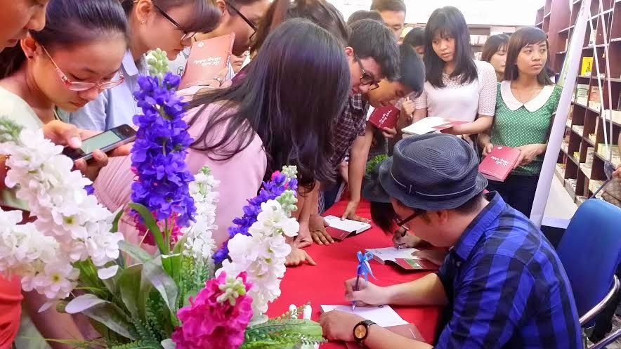 | Khá đông các bạn trẻ đến tham dự buổi giao lưu. Tuy nhiên không xảy ra tình trạng chen lấn do cặp đôi tác giả đã chủ động tổ chức hai buổi ký tặng ở những khoảng thời gian khác nhau. |