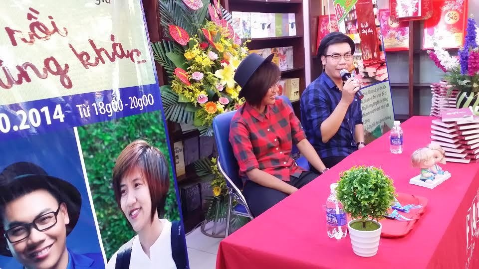 | Iris Cao và Hamlet Trương trong buổi ký tặng sách. |
