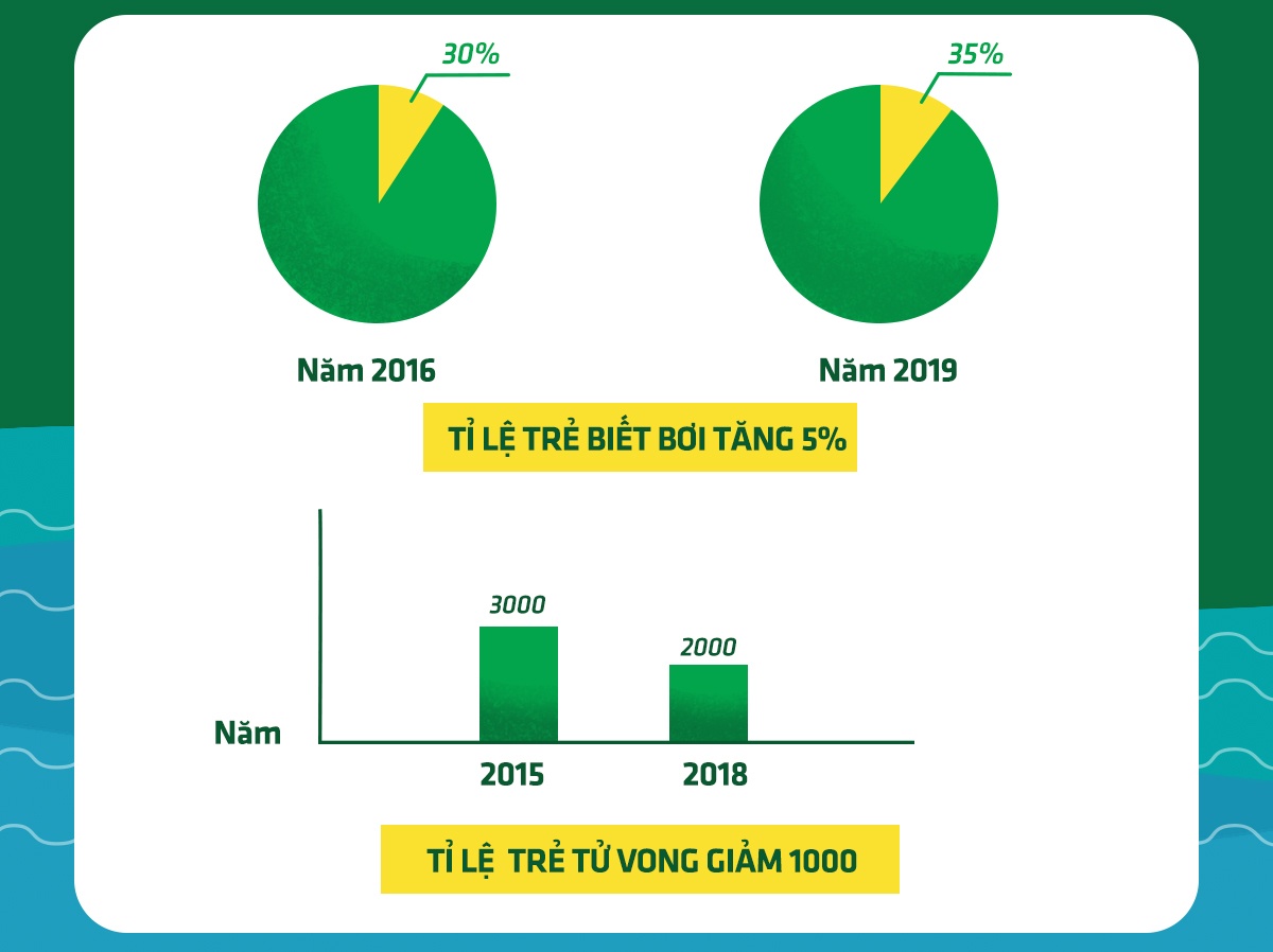Hơn 36.000 lớp dạy bơi đã được tổ chức cho hơn 3,6 triệu trẻ em trên khắp cả nước. Trong đó, hơn 2,1 triệu em đã biết bơi sau khi tham gia những khóa học này. Cùng với đó, chương trình đã phổ biến kiến thức, kỹ năng an toàn trong môi trường nước cho hơn 4,9 triệu trẻ.