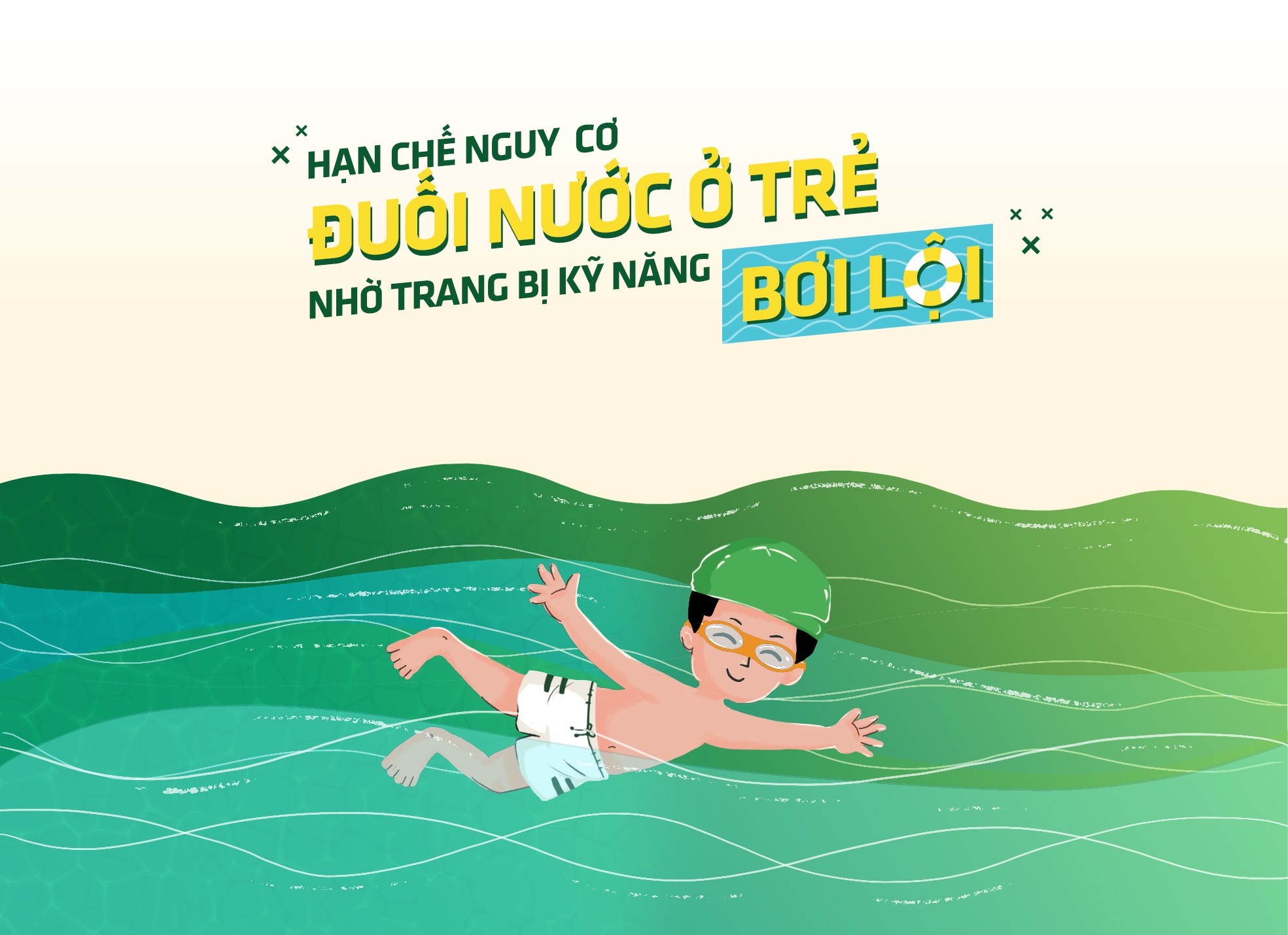 Bên cạnh hỗ trợ xây dựng nền tảng thể lực tốt, bơi lội còn là kỹ năng sống còn, bảo vệ trẻ trước những rủi ro không mong muốn trong môi trường nước.