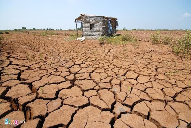 Cánh đồng bị nứt toác do hạn hán ở đồng bằng sông Cửu Long. Ảnh: Ngọc Trinh |