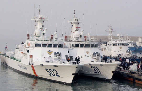 | Tàu cảnh sát biển Hàn Quốc đậu ở cảng trên đảo biên giới Yeonpyeong. Ảnh: Getty |