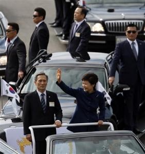 Trong lễ diễu hành kỉ niệm 65 năm thành lập Lực lượng vũ trang Hàn Quốc, Tổng thống Park Geun-hye tuyên bố: “Chúng ta cần xây dựng một lực lượng quân sự hùng mạnh để chống lại Triều Tiên tới khi Bình Nhưỡng chấp nhận từ bỏ vũ khí hạt nhân, lựa chọn những điều đúng đắn cho cuộc sống người dân và hòa bình trên bán đảo Triều Tiên”. Ảnh: Reuters. |