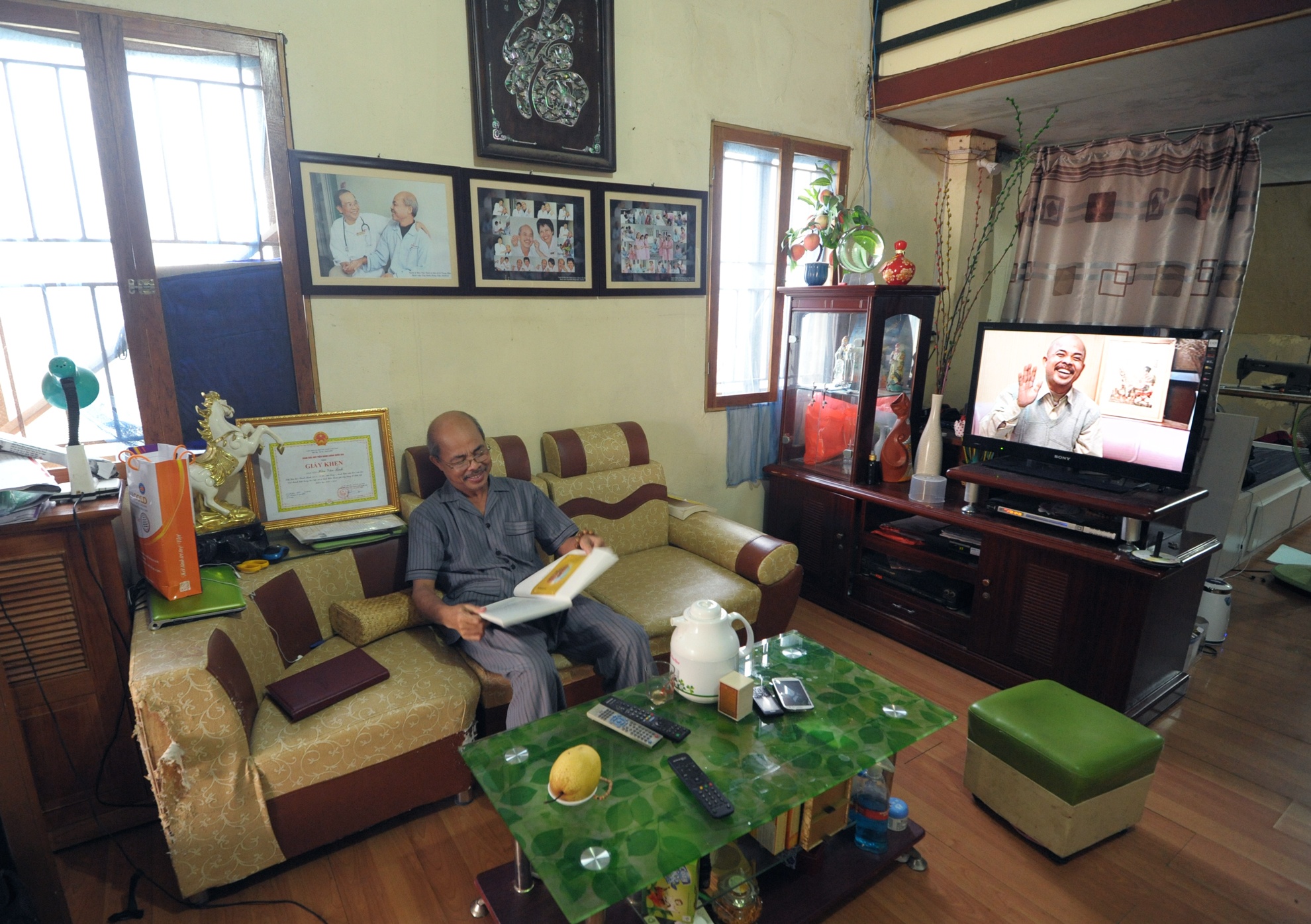 | Ông mở cho chúng tôi xem một chương trình về chính mình được đài truyền hình Hà Nội thực hiện cách đây nhiều năm. |