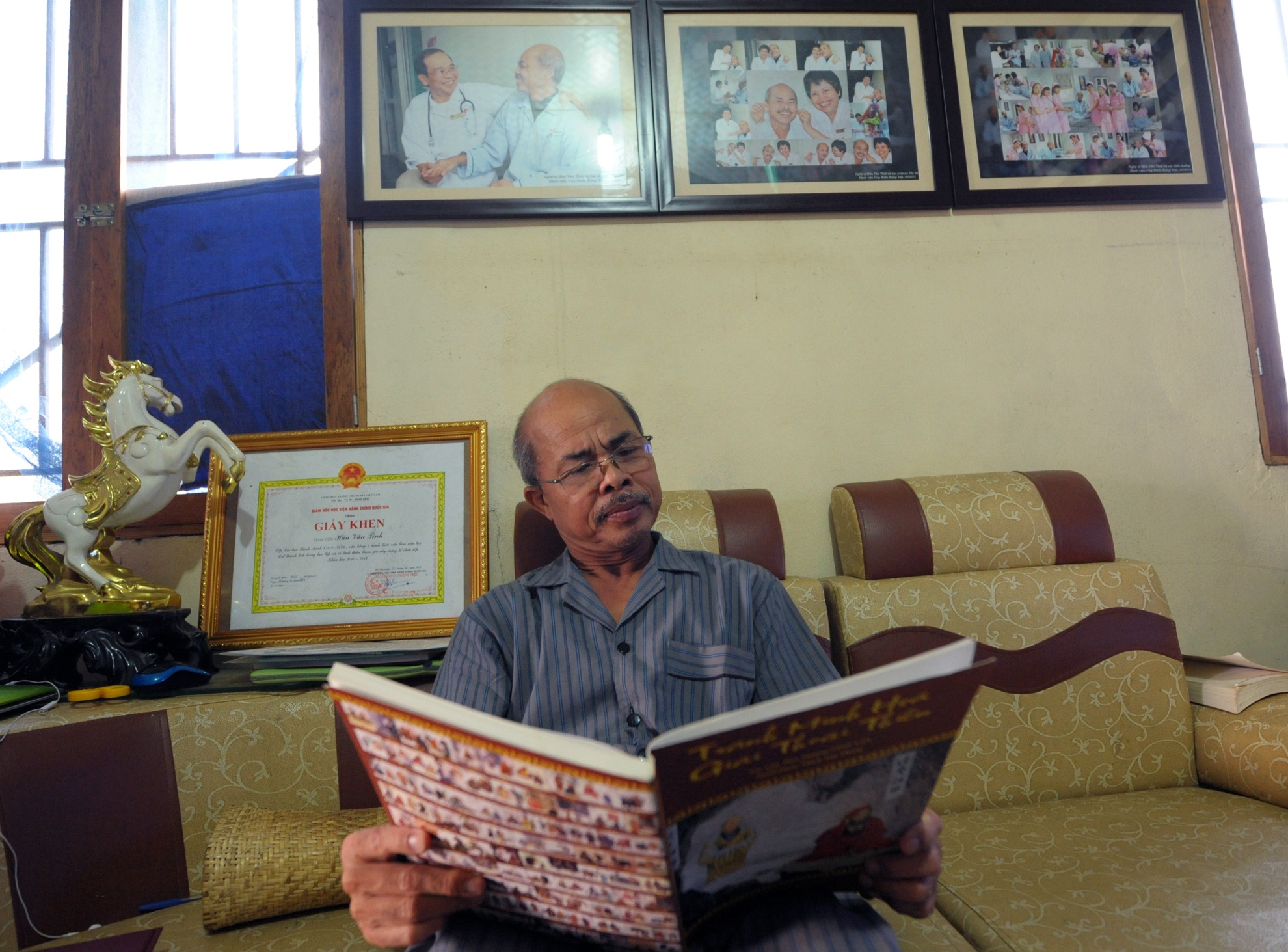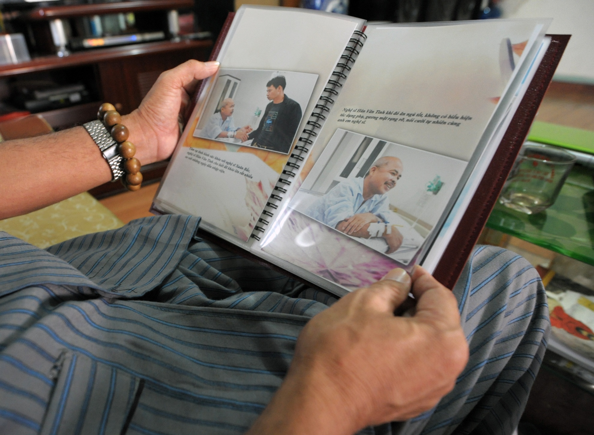 Mời khách vào nhà, ông cười bảo, bà xã và các con đều không có nhà, hôm nay chỉ có mình ông. Pha tách cà phê mời mọi người, Hán Văn Tình rót cho mình chén trà nấm linh chi. Ông tâm sự, đây là một trong rất nhiều món quà các cá nhân, tổ chức yêu mến tặng. Sau đó, người nghệ sĩ phấn khởi chỉ những bức ảnh vừa mới rửa, được treo tại vị trí đẹp nhất trong căn nhà khiêm tốn của vợ chồng ông. Đó là những bức ảnh ông chụp với đội ngũ y, bác sĩ của bệnh viện.