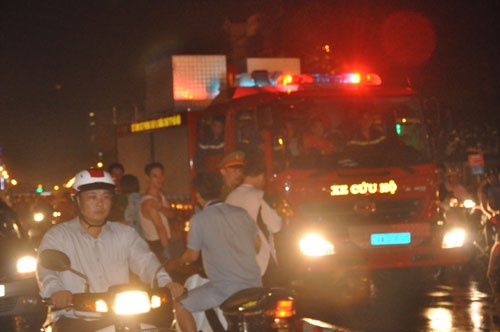 | Lực lượng cứu hộ tới hiện trường nơi cô gái dọa tự tử. |