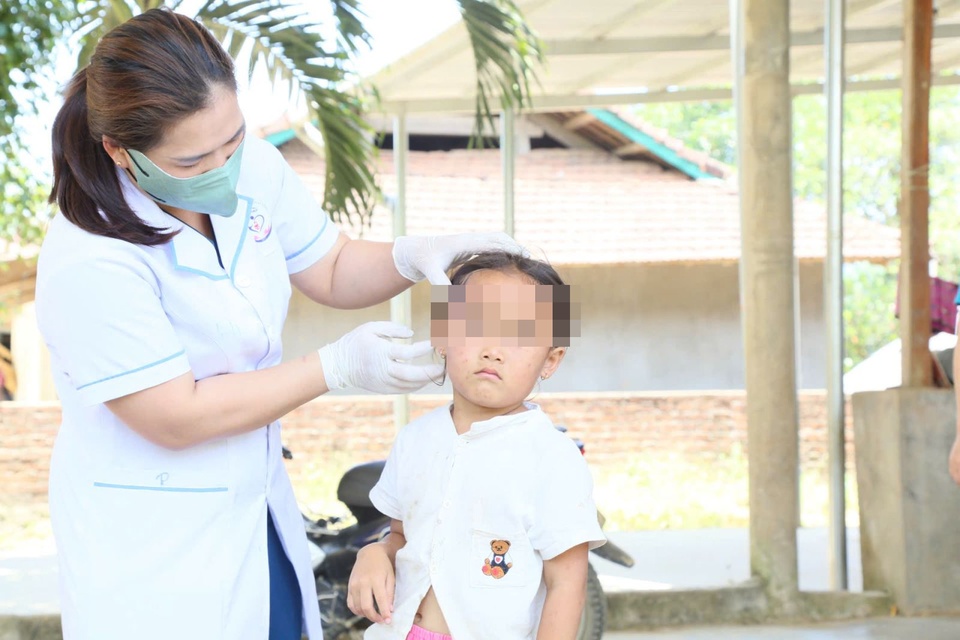 Cán bộ Trạm Y tế xã Ea Riêng theo dõi sức khỏe trẻ mắc bệnh thủy đậu. Ảnh: Sở Y tế Đắk Lắk. |
