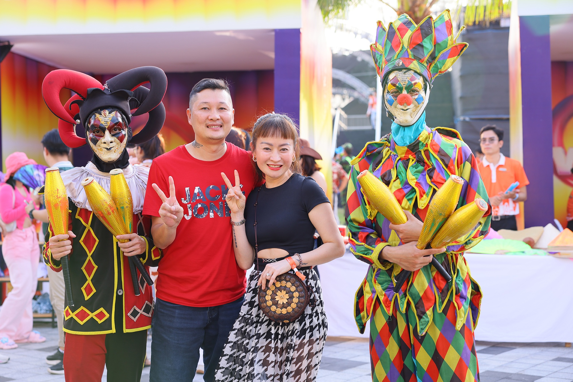 | Để tạo điểm nhấn, cổ vũ và hòa cùng tiết mục trên sân khấu, nhiều du khách ghé chọn phụ kiện như quạt mini, lightstick, túi, mũ… mang dấu ấn 8Wonder tại gian hàng Merchandise. Ngoài ra, trước thềm nhạc hội, khu vực này cũng khá tấp nập với loạt gian hàng vẽ henna, làm tóc miễn phí, trưng bày xe điện VinFast, quầy ẩm thực năm châu thu hút người dân và du khách. |