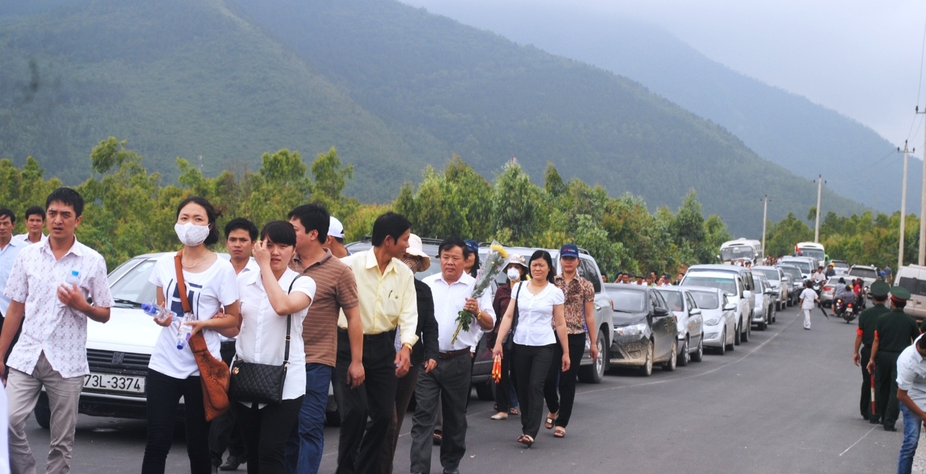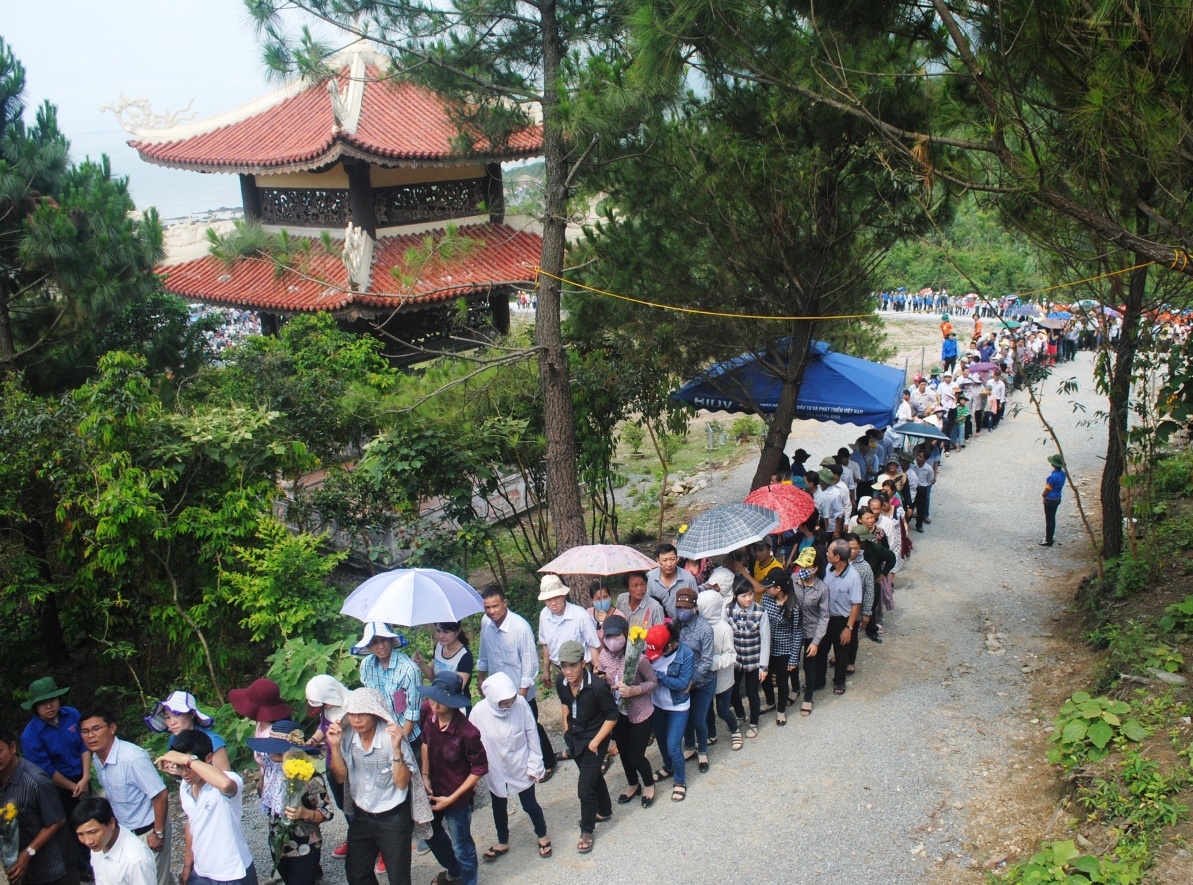 | Thiếu tá Bộ đội biên phòng Nguyễn Hồng Hà cho biết bắt đầu từ 5h30 sáng 30/4, hàng ngàn người đã đến Vũng Chùa. Lực lượng bộ đội, công an huyện, Đoàn viên thanh niên huyện Quảng Trạch và thị xã Ba Đồn, CSGT phải tăng cường quân số đến Vũng Chùa - đảo Yến. |