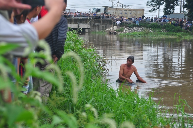 Sau gần 3 giờ đồng hồ với sự tham gia của sinh viên tình nguyện, người dân và dân phòng, thi thể nữ sinh ĐH Công nghiệp Hà Nội đã được tìm thấy.