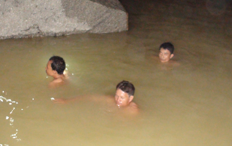 Tắm được ít phút thì Khương và Tân bị chìm xuống chỗ sâu. Nghe tiếng tri hô, hàng chục người ở gần đó chạy đến nhảy xuống mò tìm nhưng không cứu kịp.