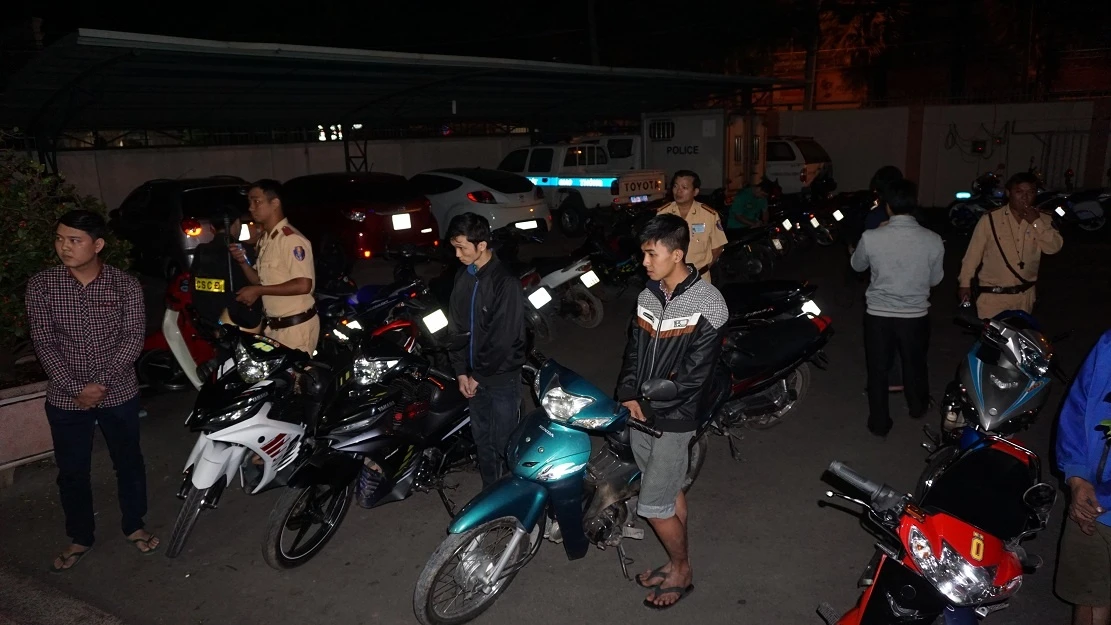Các chiến sĩ CSGT, cảnh sát cơ động mặc thường phục để tiếp cận nhóm “quái xế” và vây bắt. Đến sáng cùng ngày, công an đã bắt giữ hàng chục thanh niên, giữ 40 xe máy vi phạm để phục vụ điều tra.