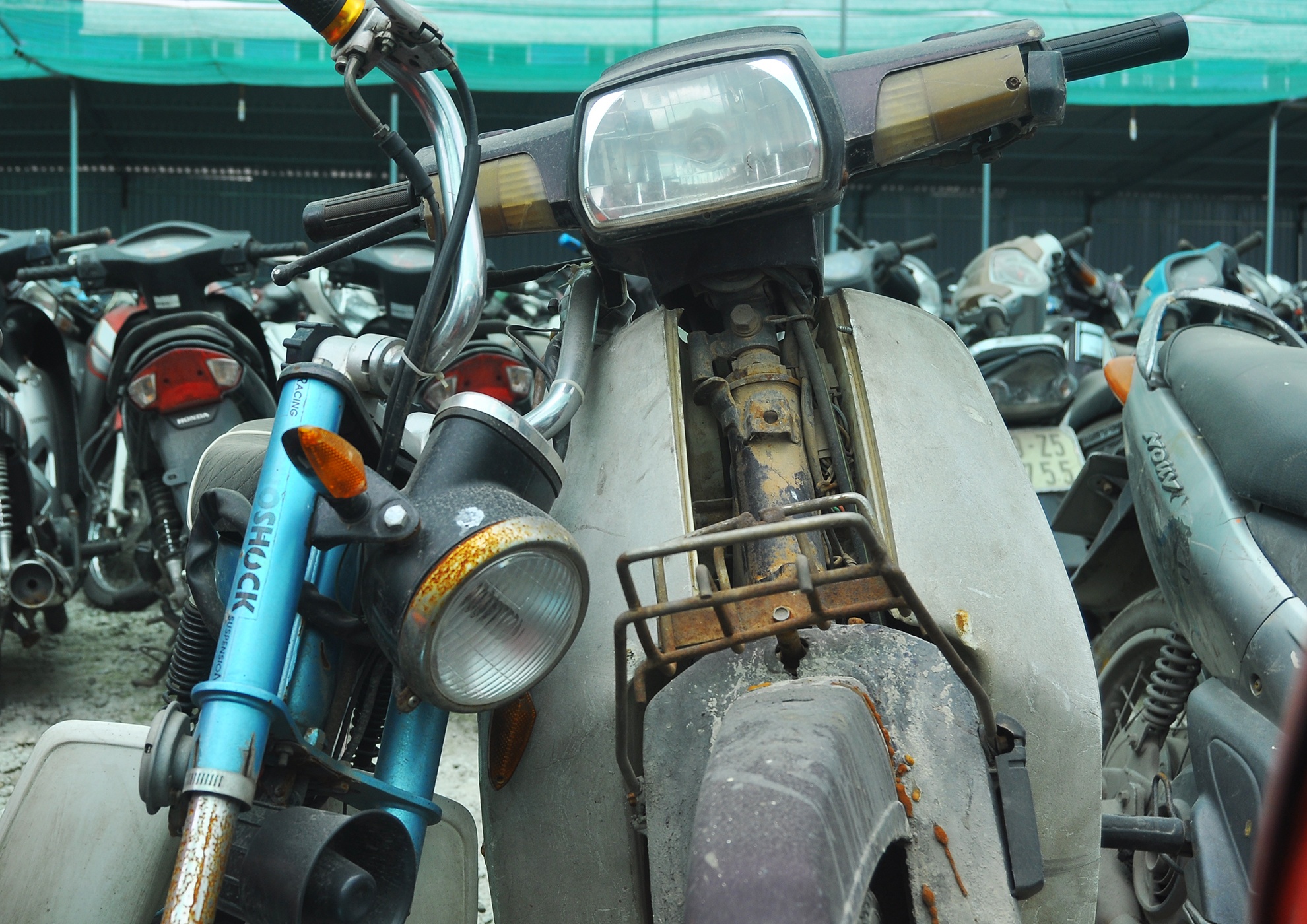 Do thời gian phương tiện lưu cữu tại các bãi xe này đã lâu nên nhiều xe bụi bám thành từng lớp. Hệ thống giảm xóc, vành – nan hoa hoen gỉ, phai nhạt màu sơn. Nhiều bộ phận khác hư hỏng theo thời gian.