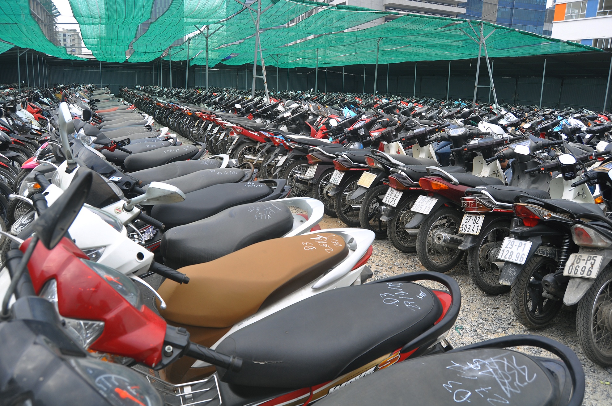 Hàng trăm phương tiện vi phạm luật giao thông (chủ yếu là xe máy) trên địa bàn thủ đô đang dầm mưa dãi nắng tại các bãi giữ phương tiện vi phạm Bồ Đề, Nam Trung Yên, Giảng Võ, Nghĩa Tân, Đền Lừ, Thái Thịnh...