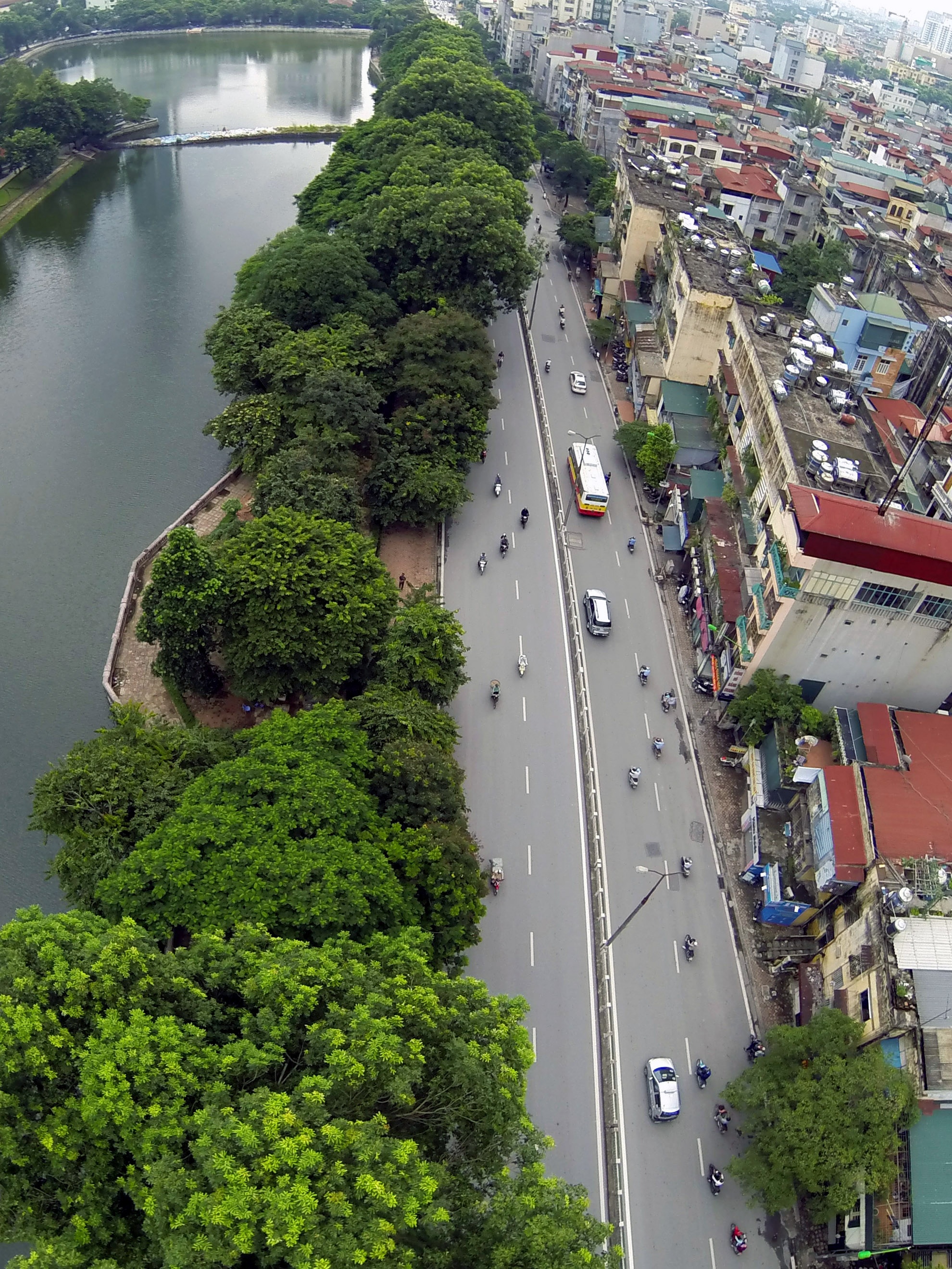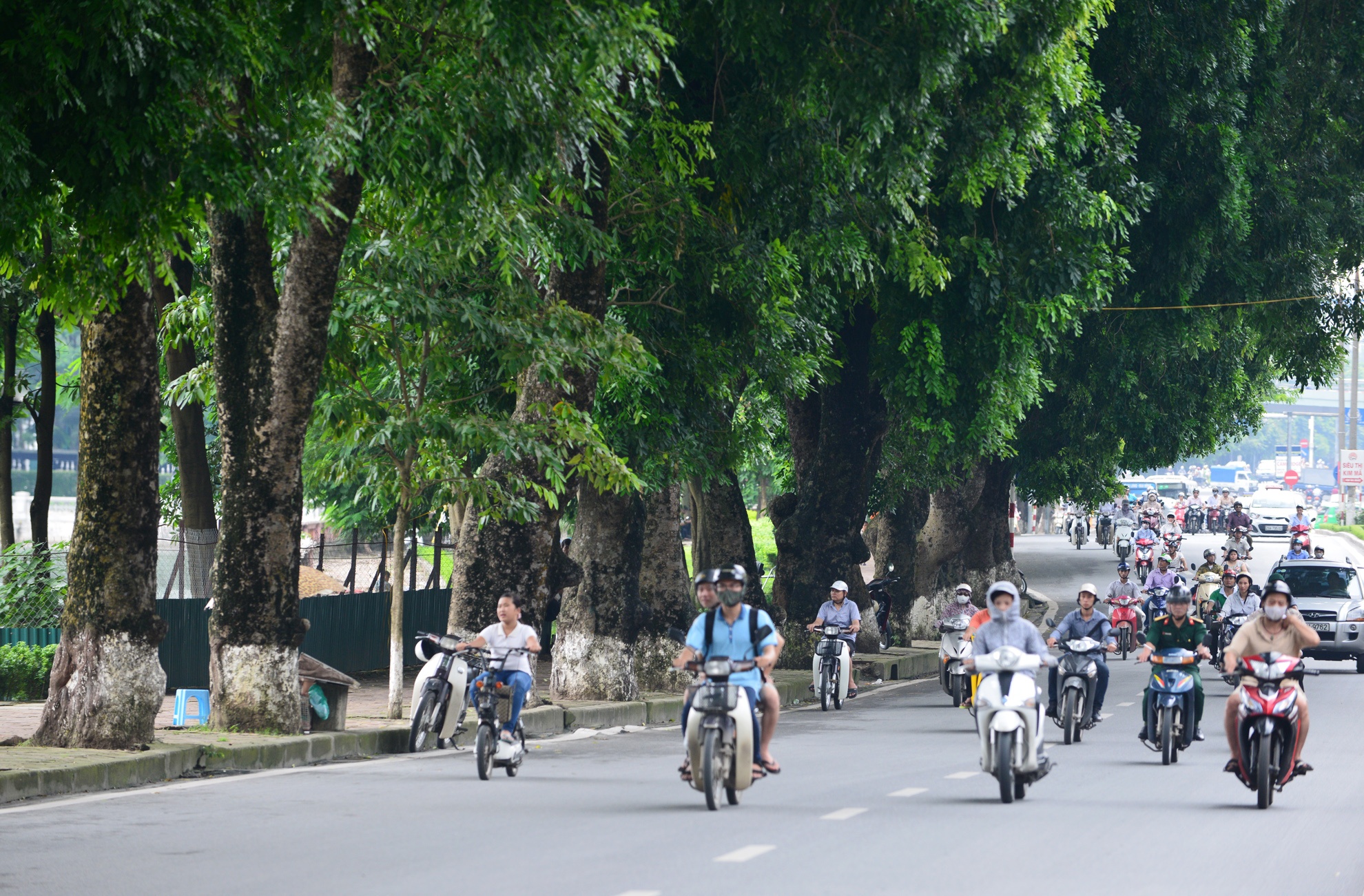 Hàng cây trong ảnh gồm xà cừ cổ thụ, điệp và đa lâu năm trên tuyến đường Kim Mã (ven hồ Thủ Lệ), vốn được coi là một trong những hàng cây đẹp và ý nghĩa của Hà Nội.