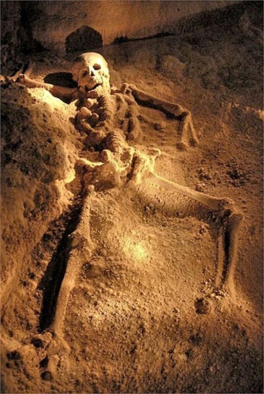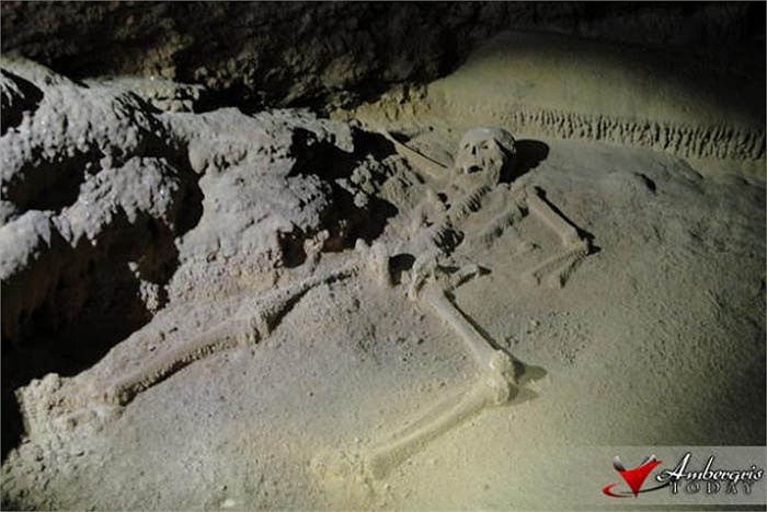 | Tư thế nằm của bộ xương và vết gãy mạnh ở xương sống cho thấy nhiều khả năng cô gái này đã bị ném từ trên miệng hang xuống và qua đời. |