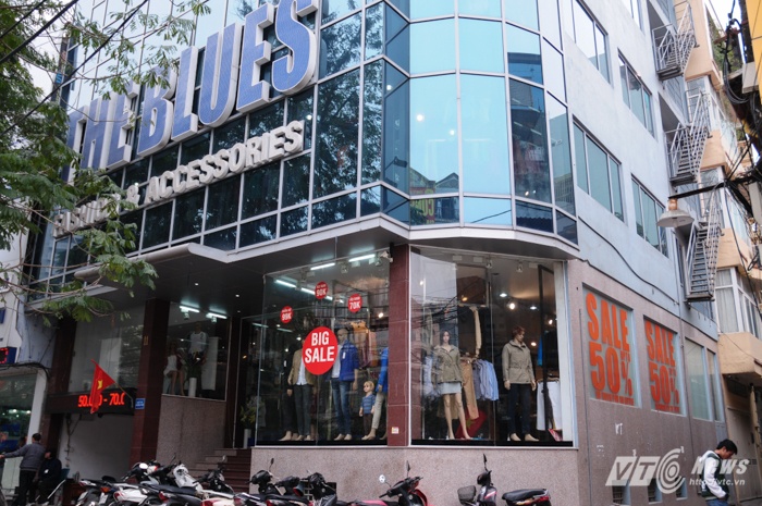 Thương hiệu Blues quảng cáo chương trình giảm giá bằng những biển hiệu cỡ lớn chạy quanh cửa hàng. |