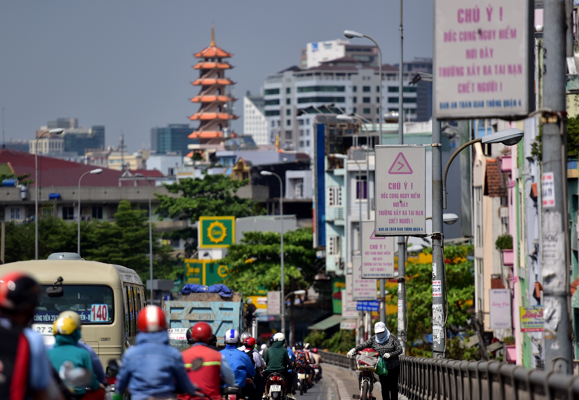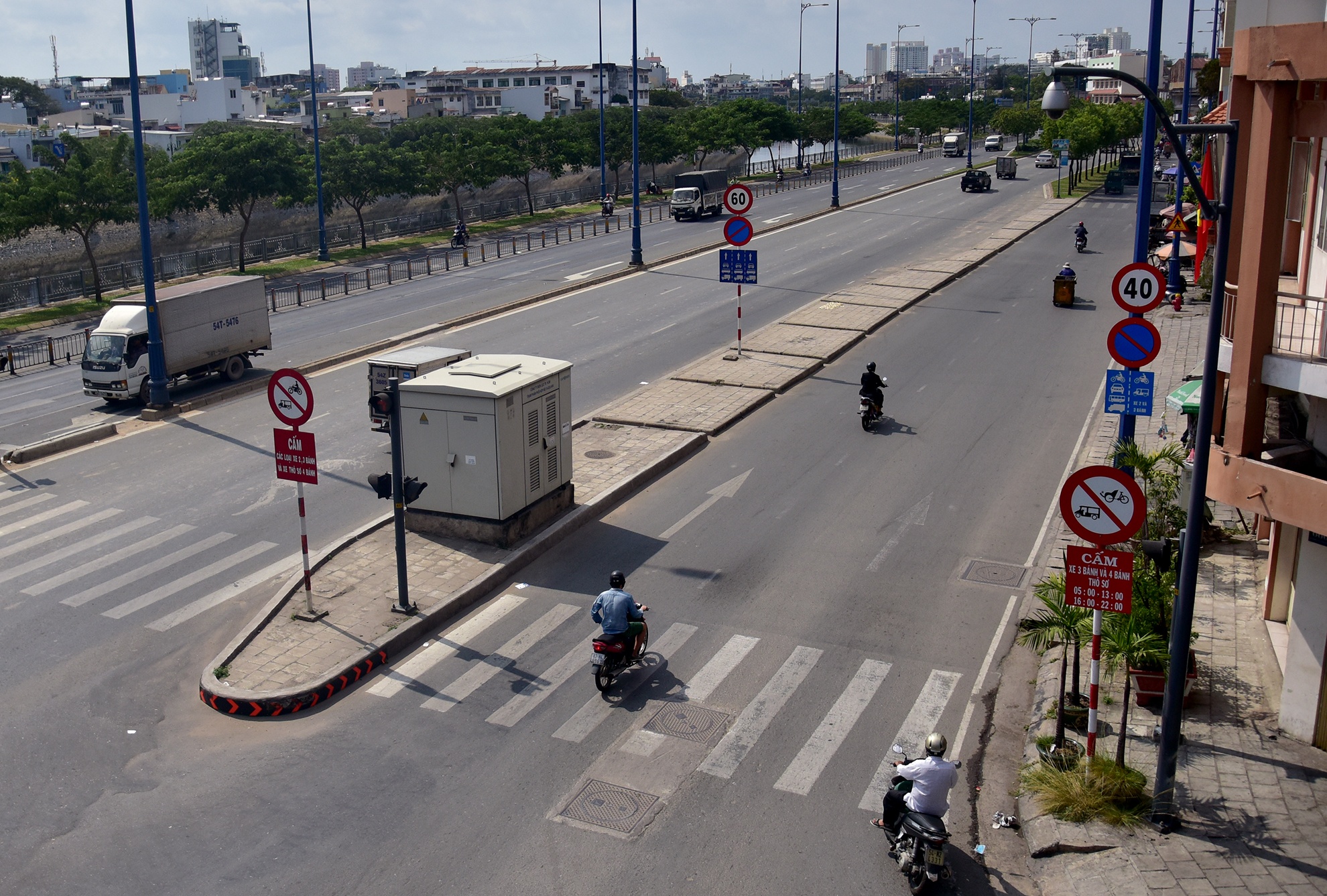 | Trong khi đó, trên tuyến đường Điện Biên Phủ, cửa ngõ phía đông ra vào thành phố, đoạn từ chân cầu Sài Gòn đến cầu Điện Biên Phủ đông đúc xe cộ nhưng hai làn xe máy có thể chạy tốc độ tối đa đến 50 km/h. |
