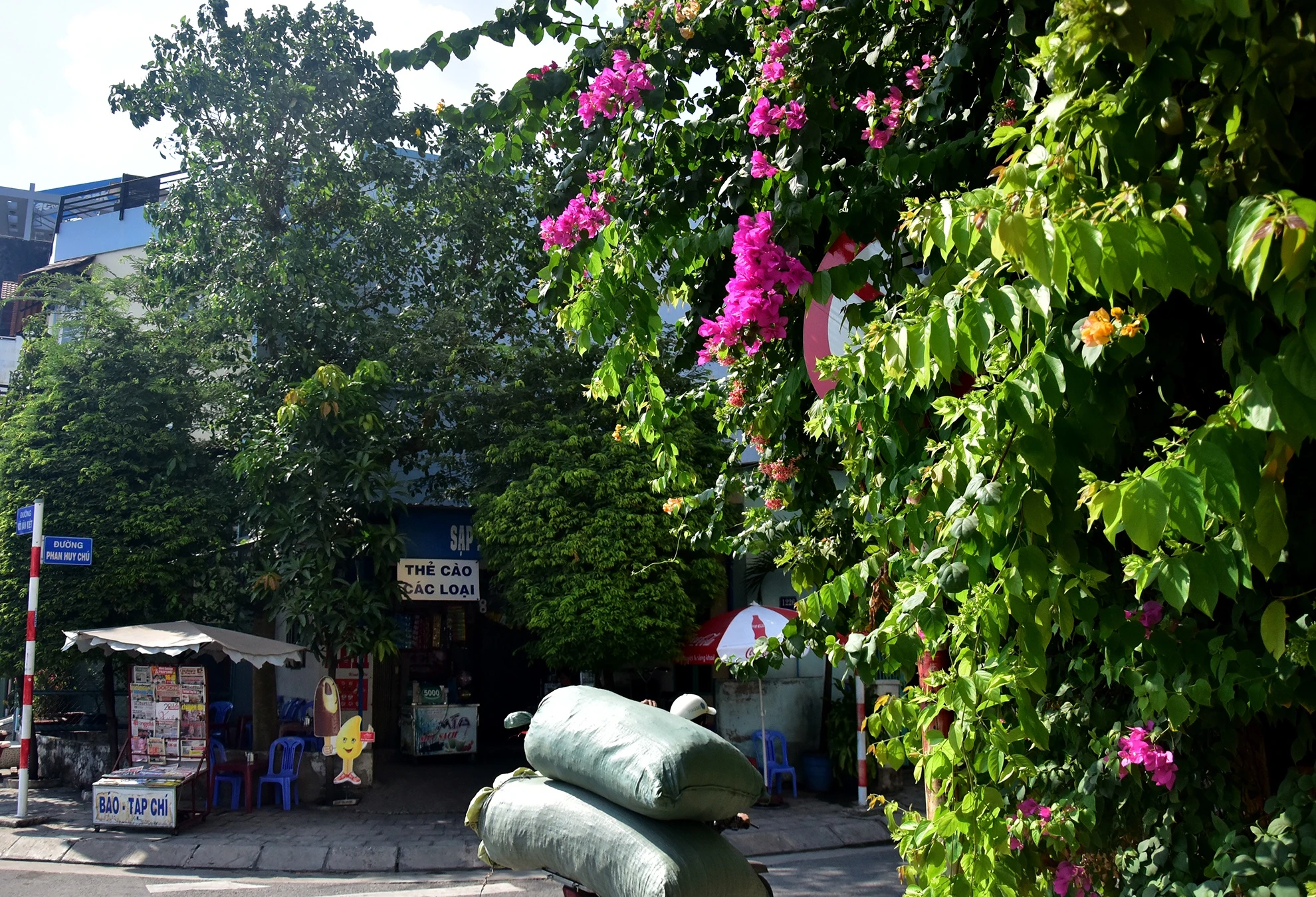 | Những biển báo bị lùm cây che khuất như "bẫy" tài xế tại đường Phan Huy Chú, quận 5. |