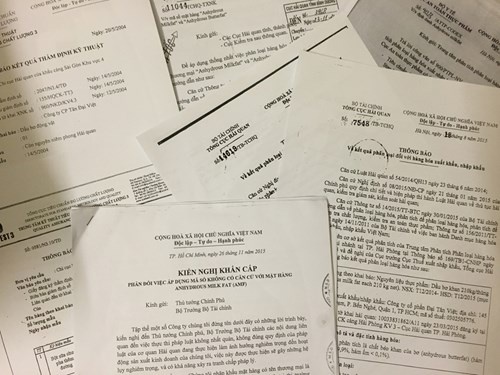 Trong khi đó, Anhydrous ButterFat theo quy trình của nhà sản xuất đi từ kem hay bơ có độ tuổi khác nhau, có thể được sử dụng phụ gia trong quá trình sản xuất thì thuộc mã số 0405.90.10 “chất béo khan bơ”. Lý do này đưa ra đã vấp phải sự phản ứng quyết liệt từ các công ty nhập khẩu làm nguyên liệu sản xuất như: Vinamilk, công ty CP Sữa Hà Nội, Nutifood, FrieslandCampina Việt Nam, công ty Cổ phần Đại Tân Việt, công ty CP TM và Công nghệ Thực phẩm Hoàng Lâm...