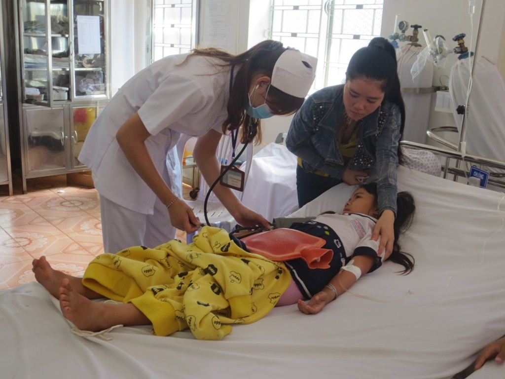 | Học sinh trường tiểu học Đinh Tiên Hoàng điều trị tại trung tâm y tế. Ảnh: N.A |
